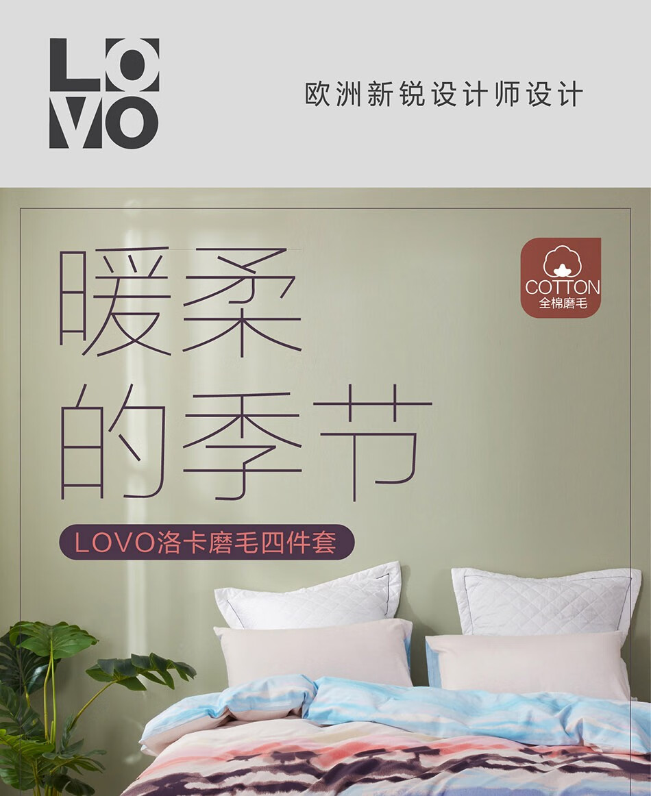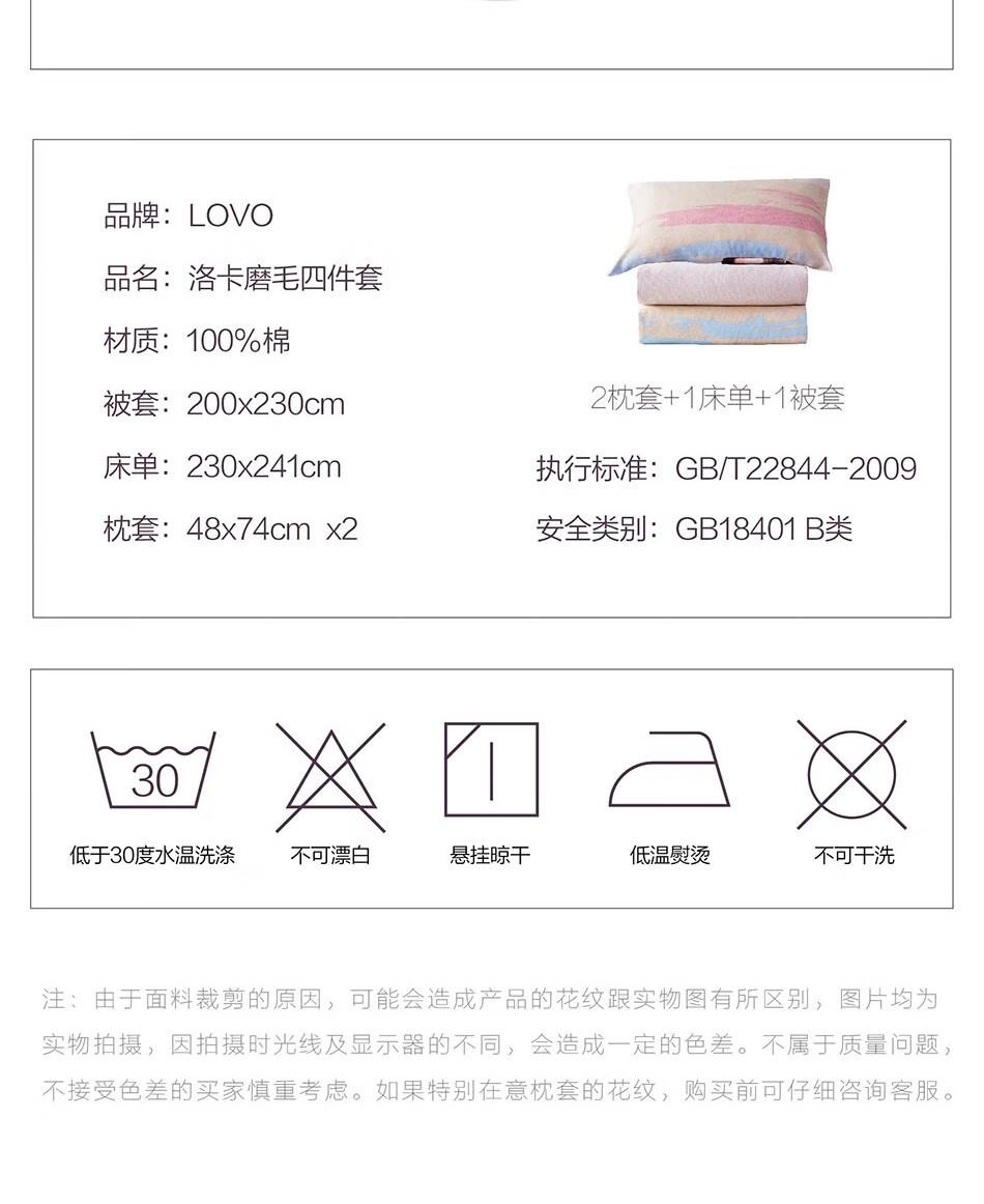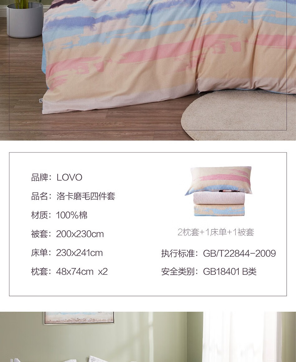 乐蜗家纺 洛卡磨毛床品四件套 200*230cm 1套