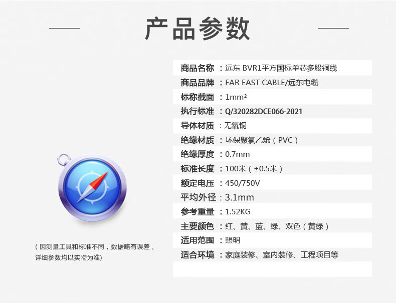 远东电缆 铜芯聚氯乙烯绝缘软结构布电线 BVR1 绿色零线 100米 1卷