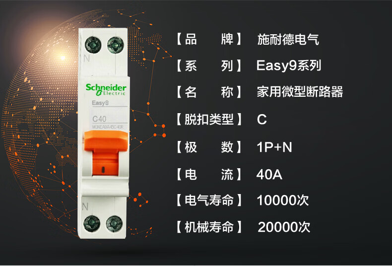 施耐德电气 微型断路器 MGNEA9A45C40R 1P+N 40A 1个