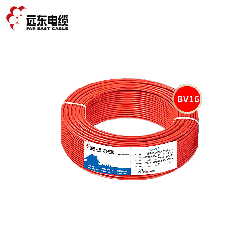 远东电缆 铜芯聚氯乙烯绝缘硬结构布电线 BV16 红色 100米 1卷