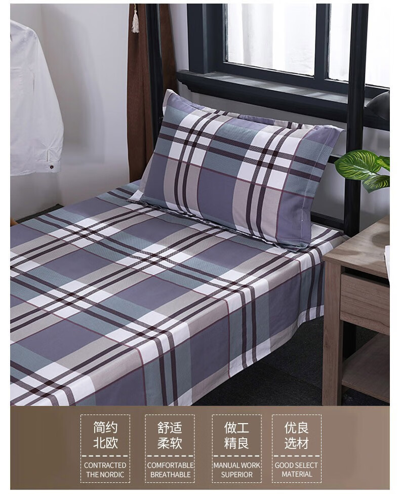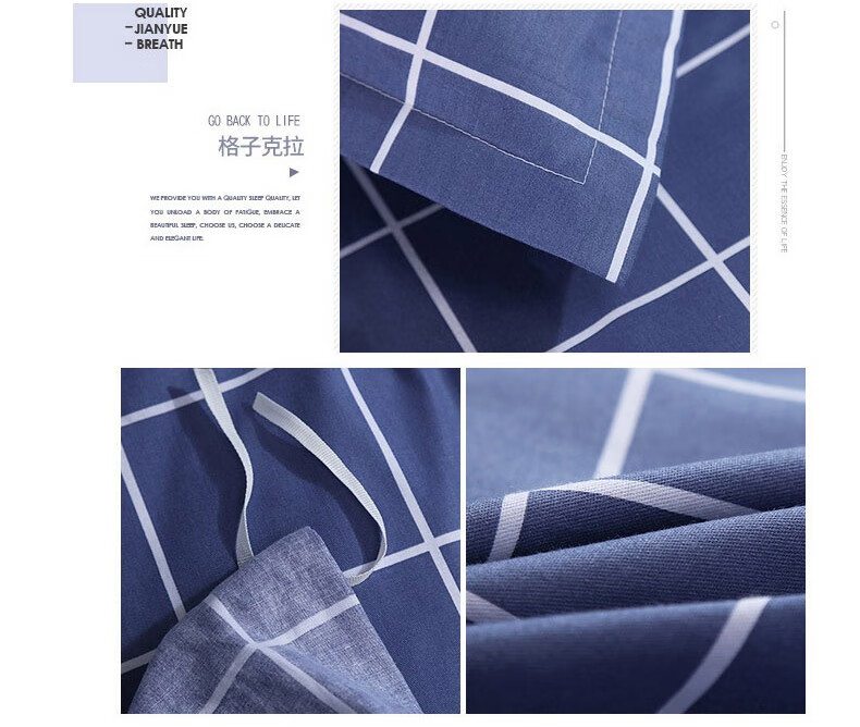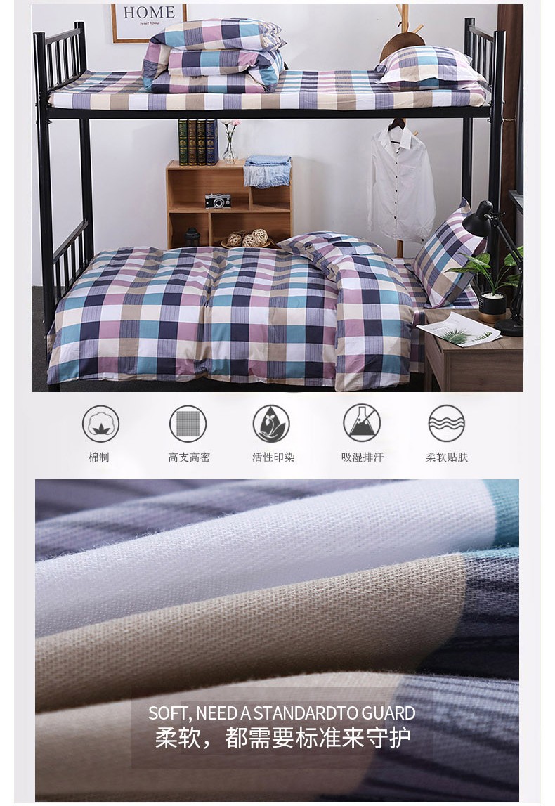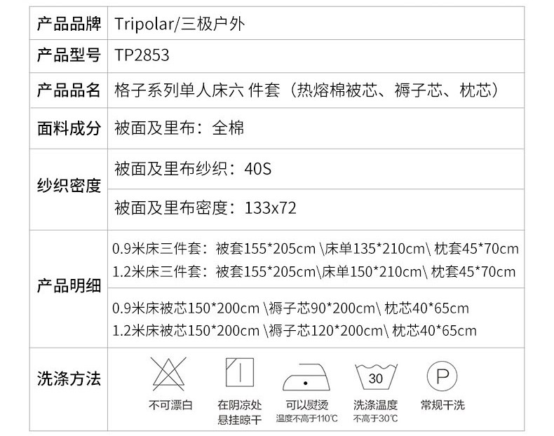 三极户外 单人床品 TP2853 蓝大格 155*205cm 新疆长绒棉被芯+40纱支被罩 1件