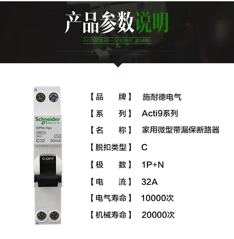 施耐德电气 空气开关带漏电保护 A9D93632 1P+N 32A 1个