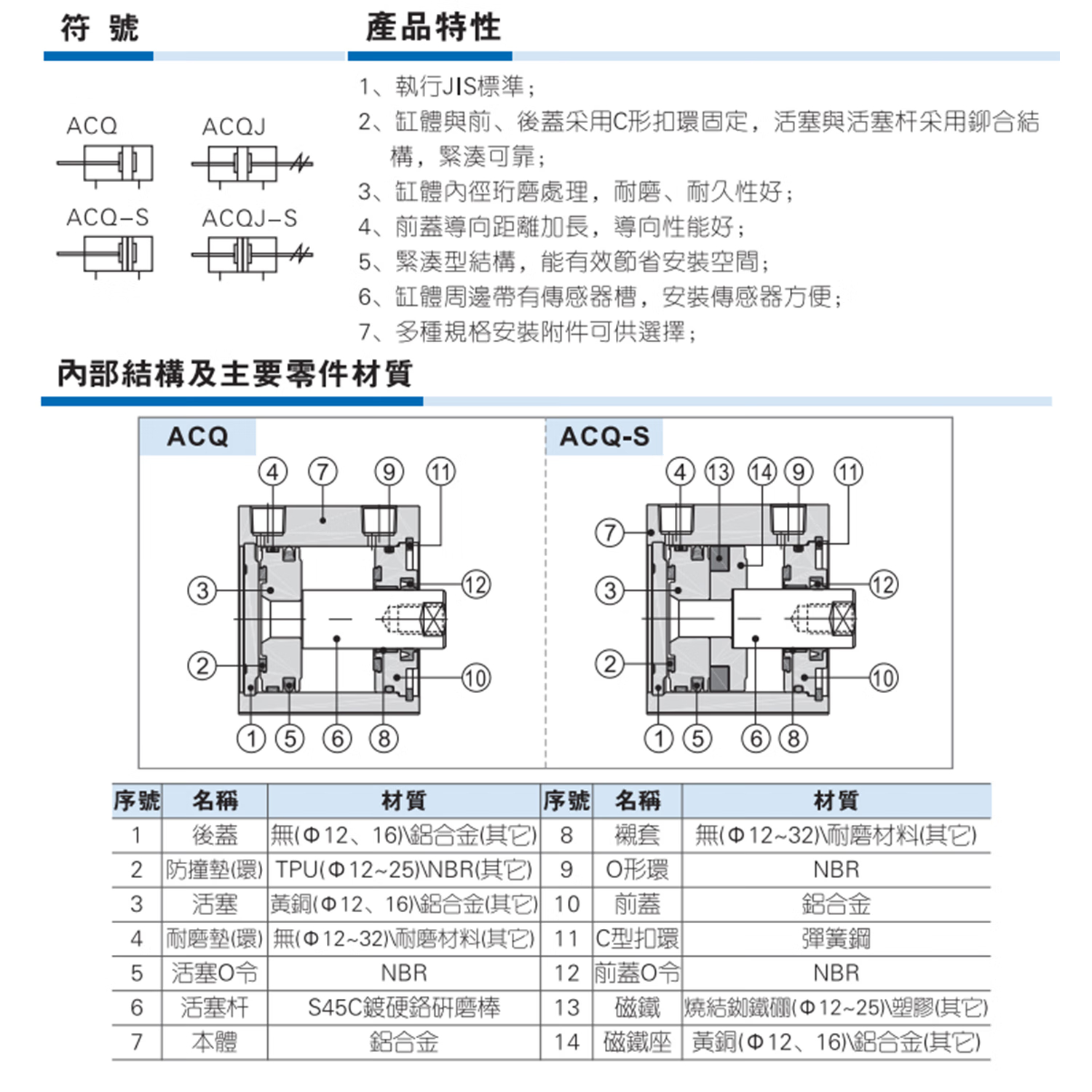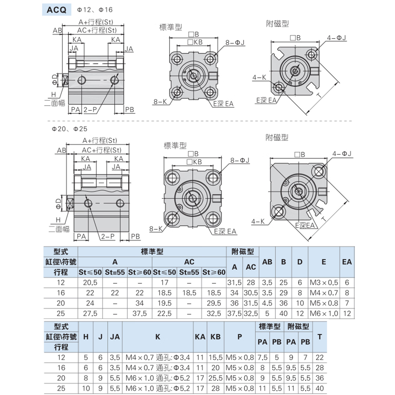 亚德客 ACQ系列超薄气缸(复动型) ACQ25*45 1个