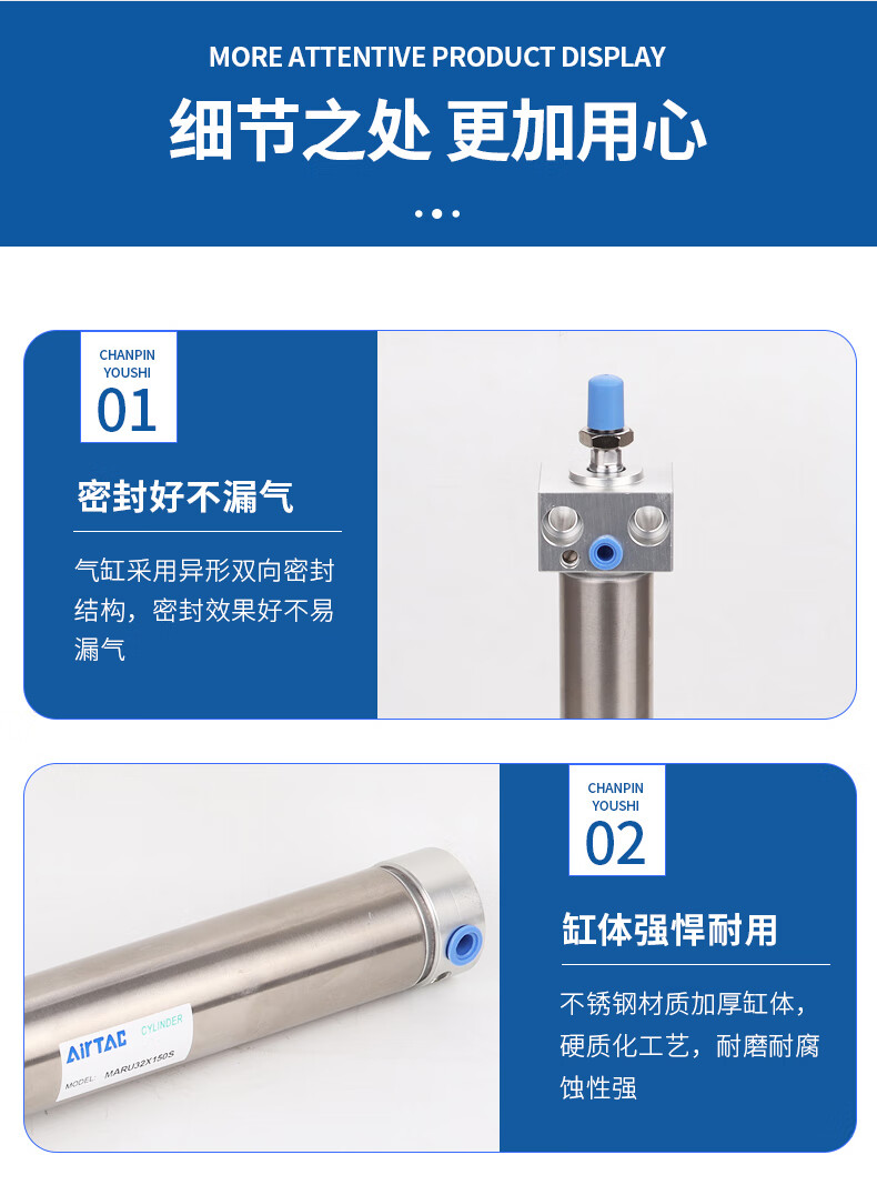• 商品名称:亚德客 MAR系列不锈钢迷你气缸(复动可调缓冲型)