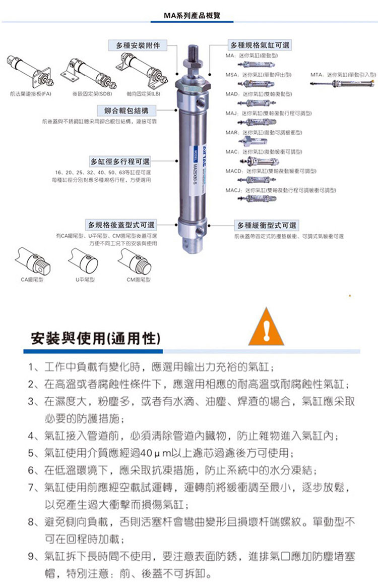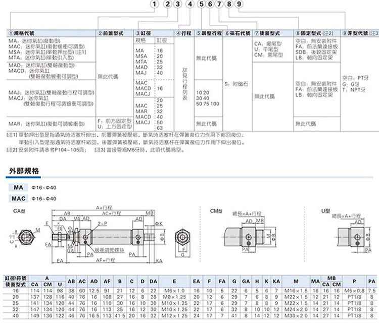 亚德客 MA系列不锈钢迷你气缸(复动型) MA32X350SCA 1个