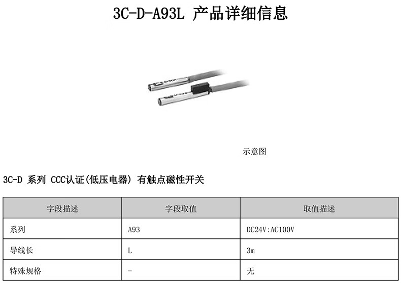 SMC 3C-D系列有触点磁性开关 3C-D-A93L 1个