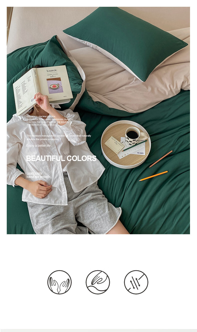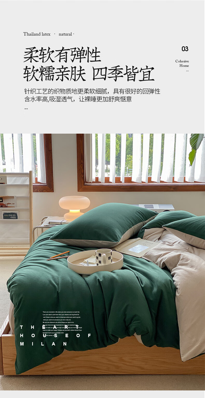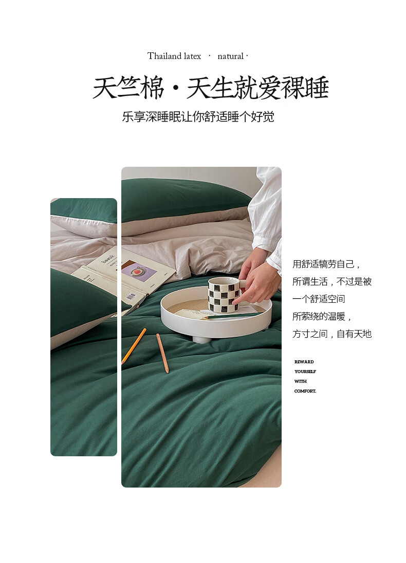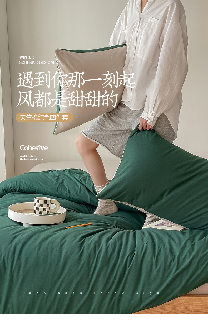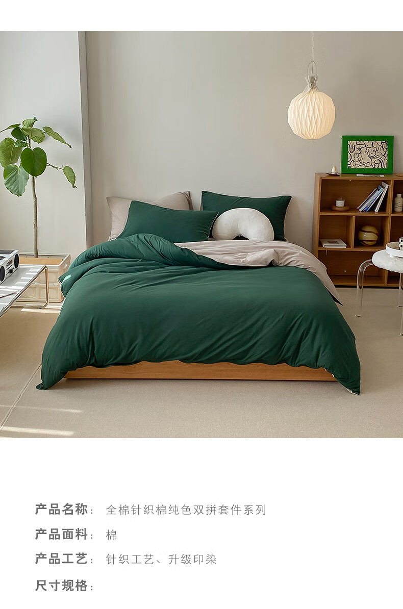 三极户外 天竺棉四件套 TP2756 墨绿拼杏色 1.2米床笠款(被套150*200) 1套