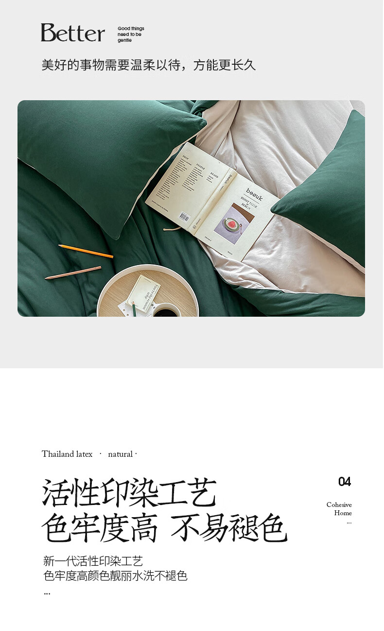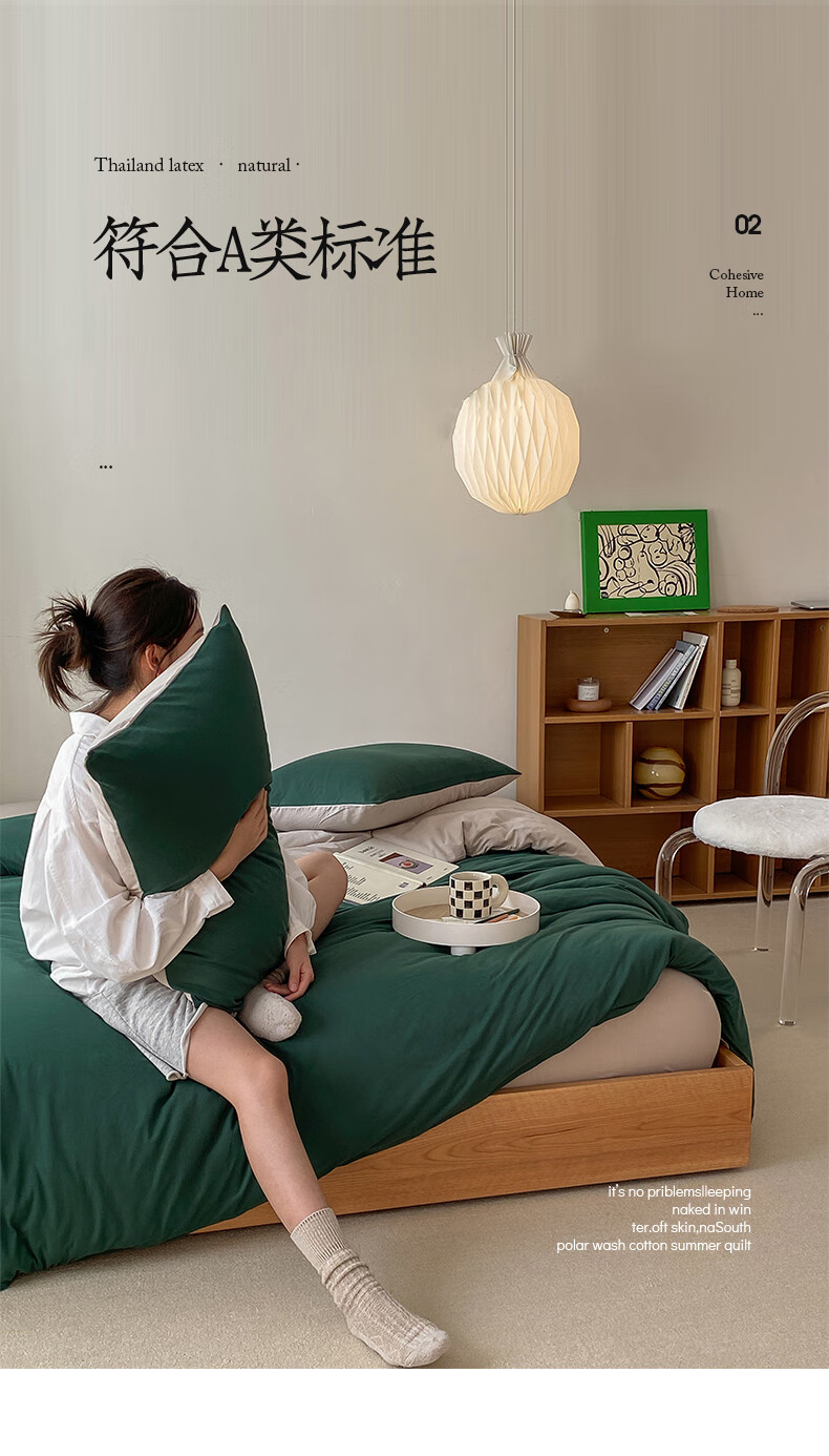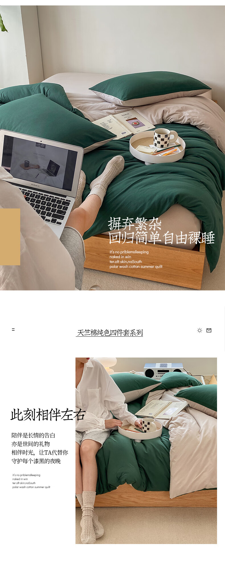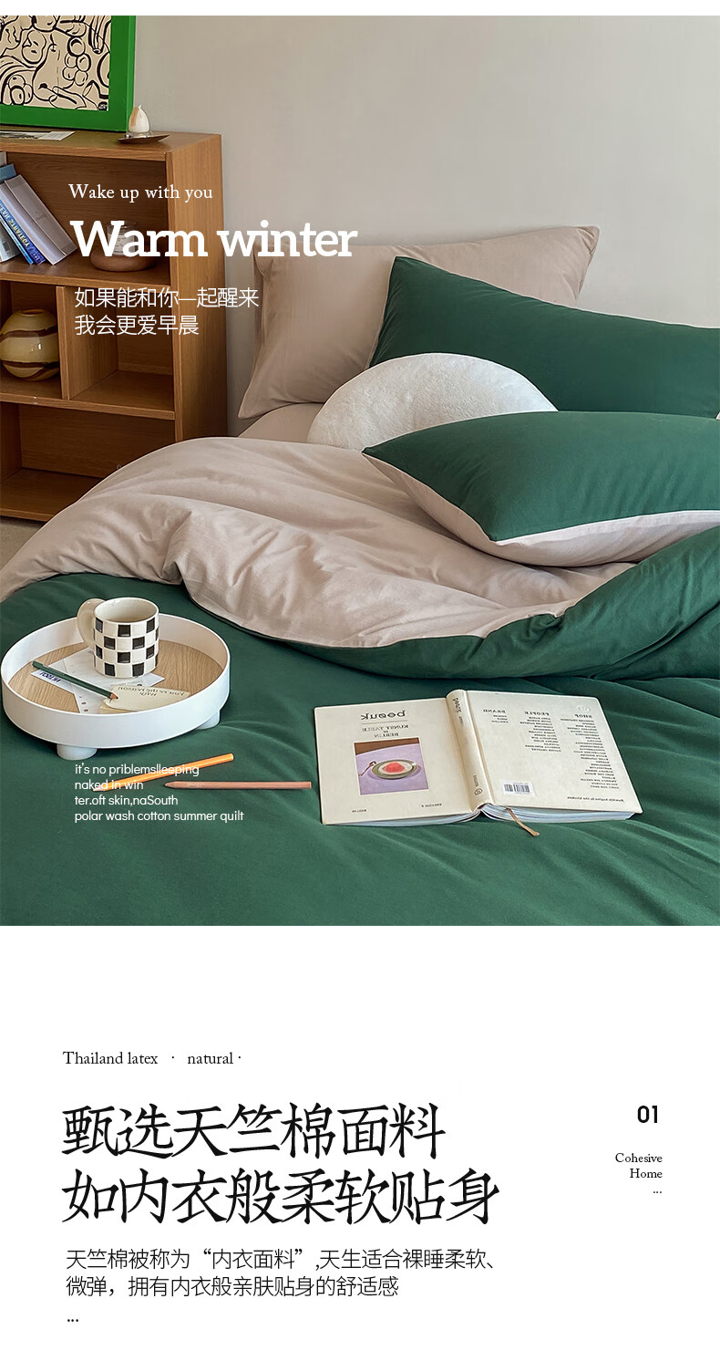 三极户外 天竺棉四件套 TP2756 墨绿拼杏色 1.2米床笠款(被套150*200) 1套