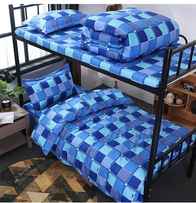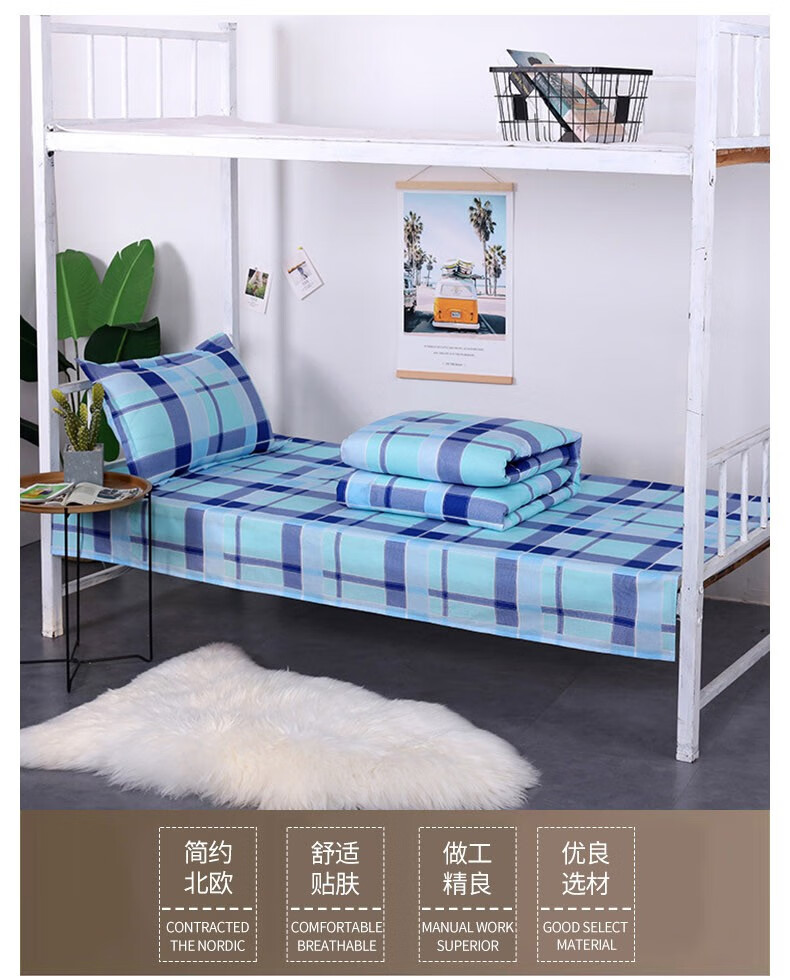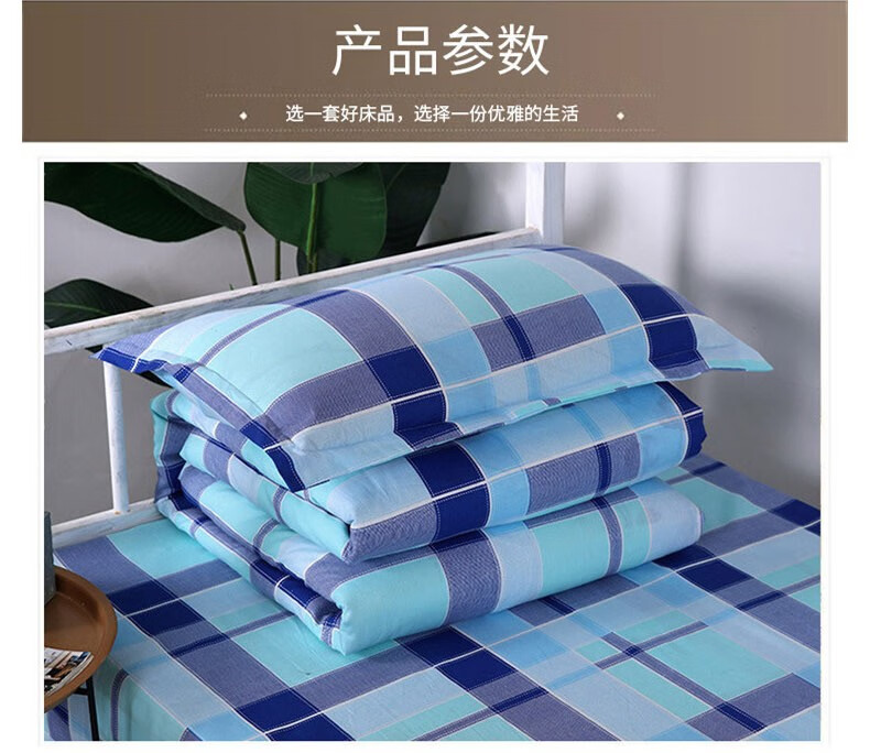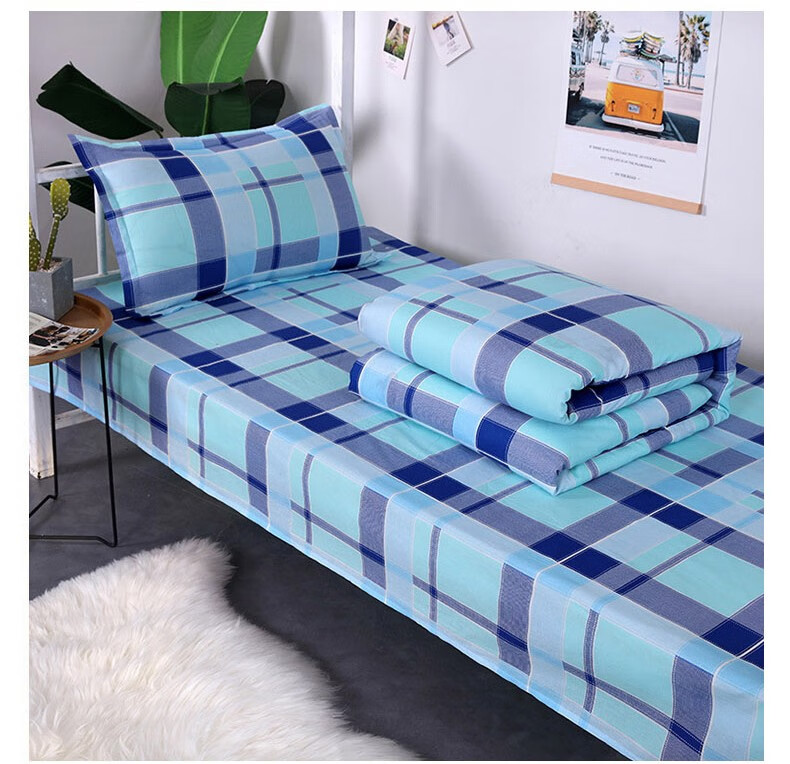 三极户外 精梳棉40纱支三件套 TP2855 蓝白格 床单+被罩+枕套三件套 1套