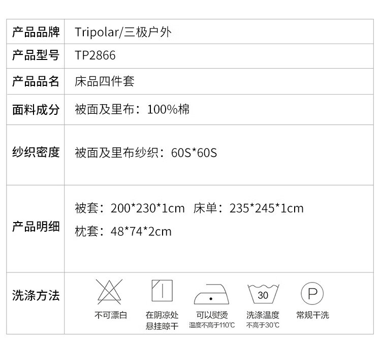 三极户外 全棉床品套装 TP2866 深蓝色 全棉60纱支 2m床四件套 1套