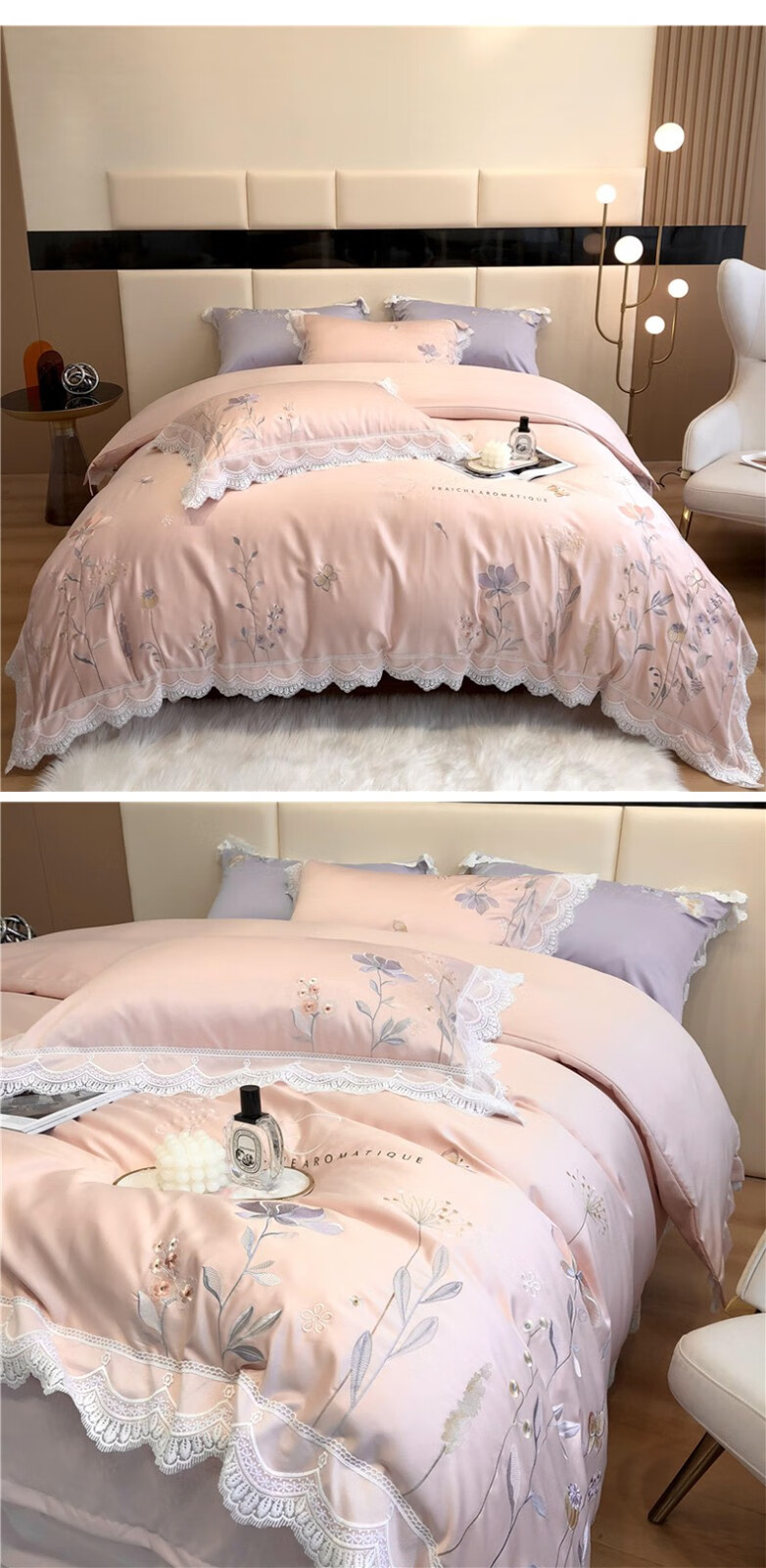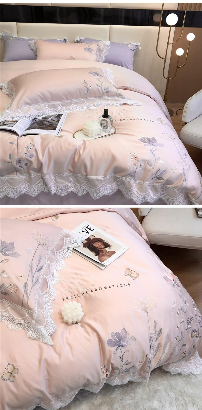 三极户外 双面冰丝四件套 TP2889 青诗粉 1.5m床单款四件套 1套