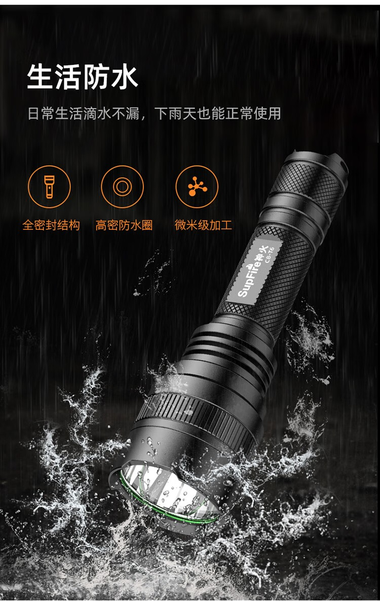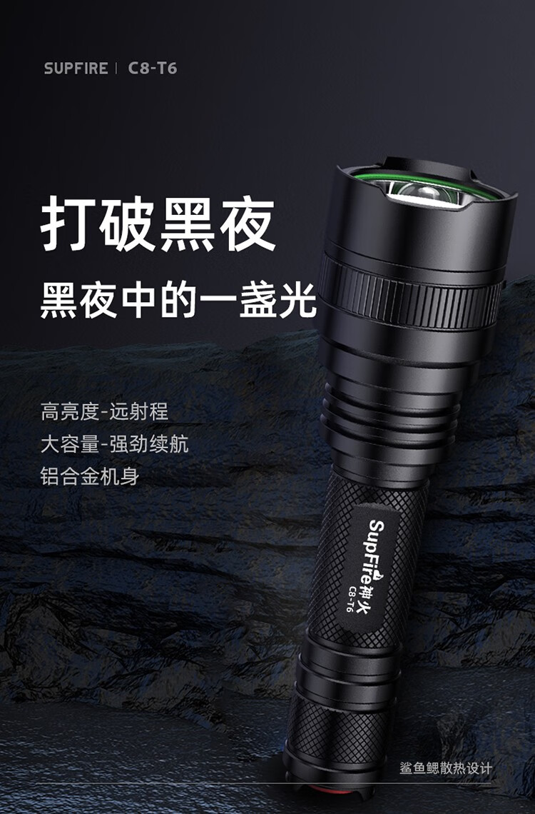 神火 C8系列强光手电筒 C8-T6 10W 白光 159*45*28mm 1个
