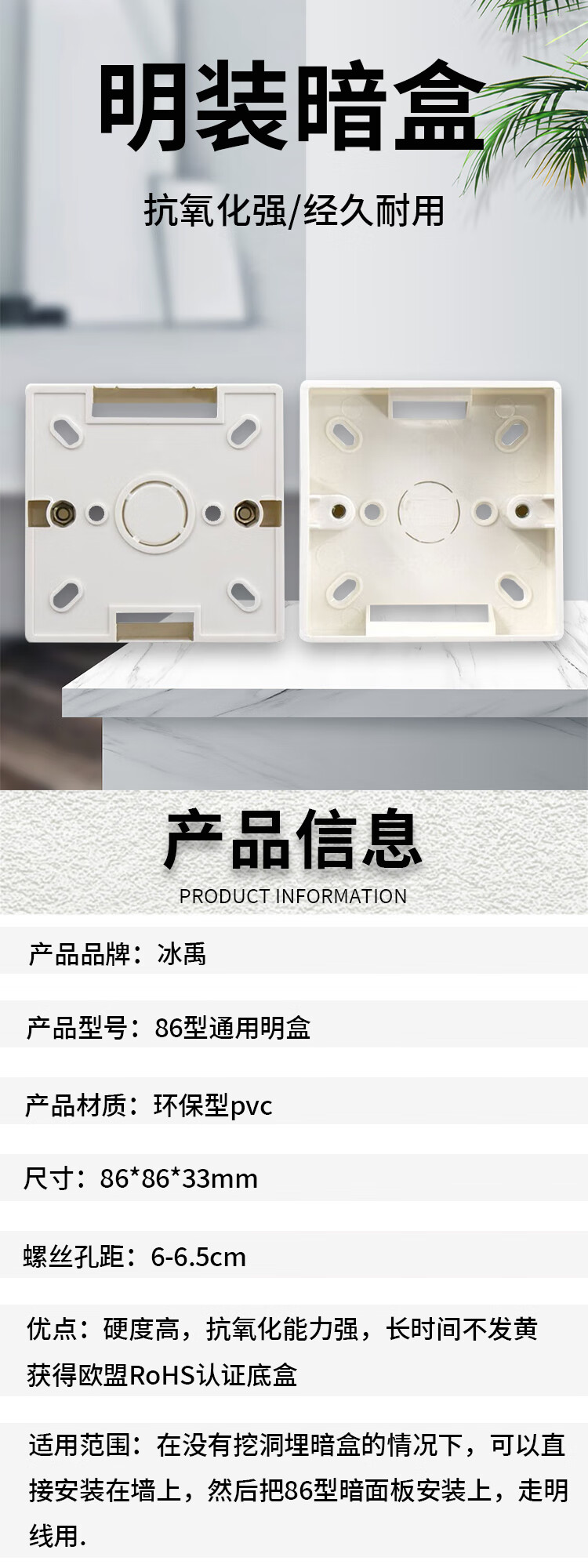 冰禹 86型明装开关底盒 BJ325 86型 5只 1个