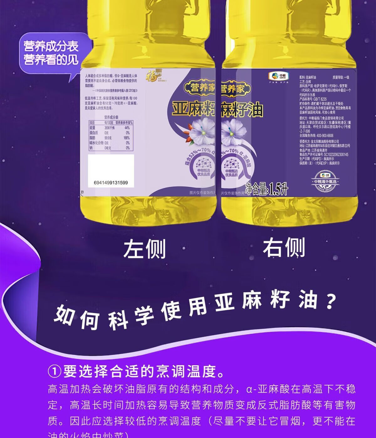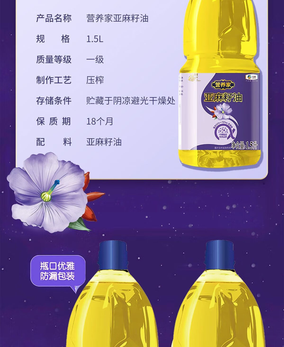 福临门 营养家 亚麻籽油 1.5L 1桶