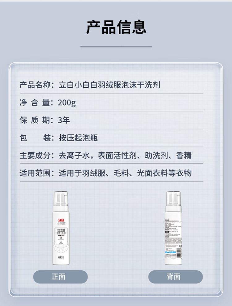 立白 小白白羽绒服泡沫干洗剂 200g 1瓶