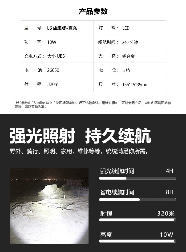 神火 L6系列远射手电筒 L6-S 10W 172*45*36mm 1个