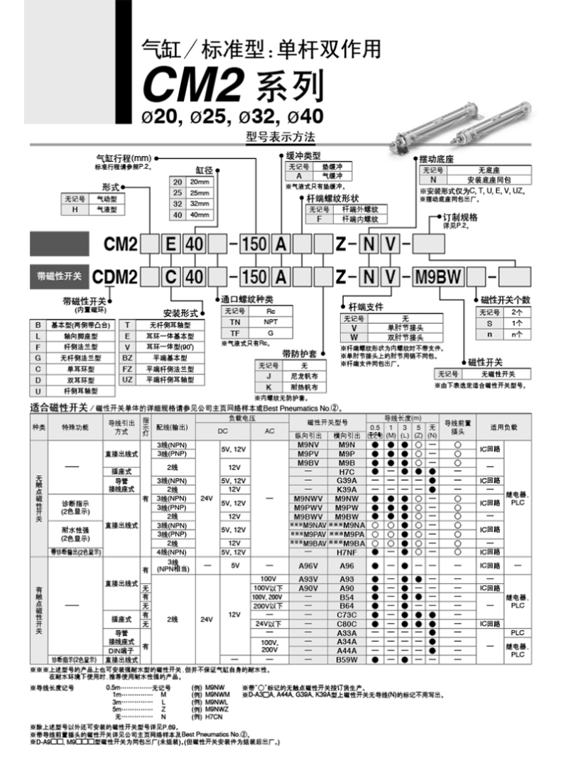 SMC CM2-Z系列标准气缸 CDM2L32-350Z 1个