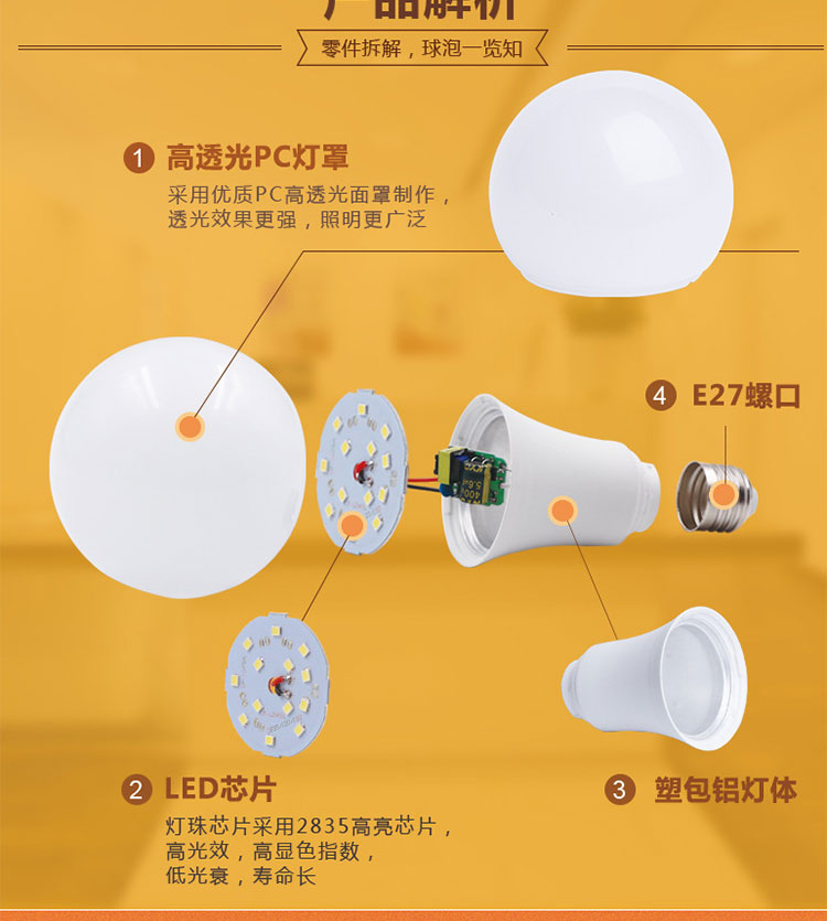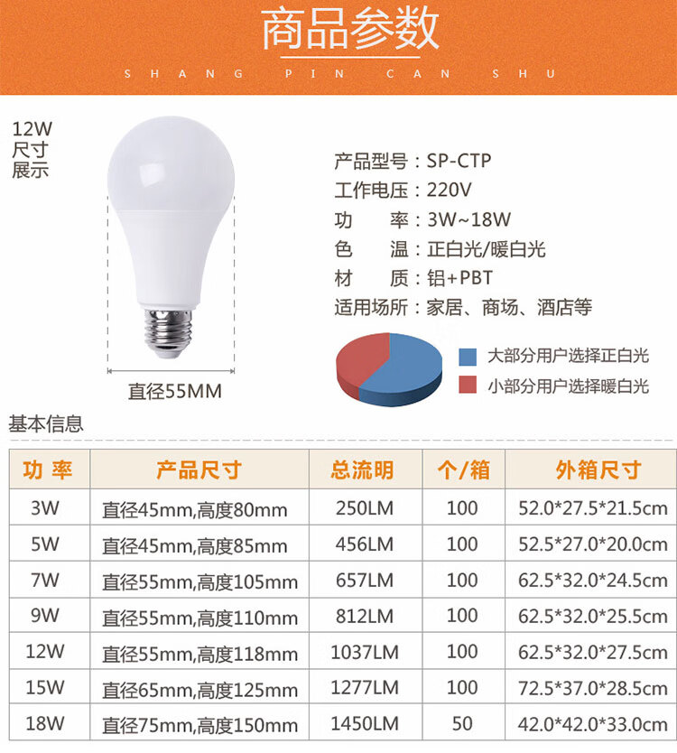 菲尼泰科 塑包铝led球泡灯 PN-096 白光 6500K 3W 1个
