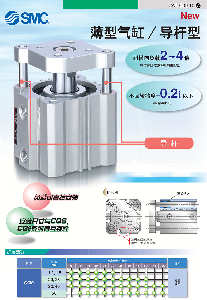 • 商品名称:SMC CQM系列薄型导杆型气缸