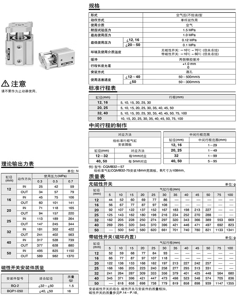 • 商品名称:SMC CQM系列薄型导杆型气缸
