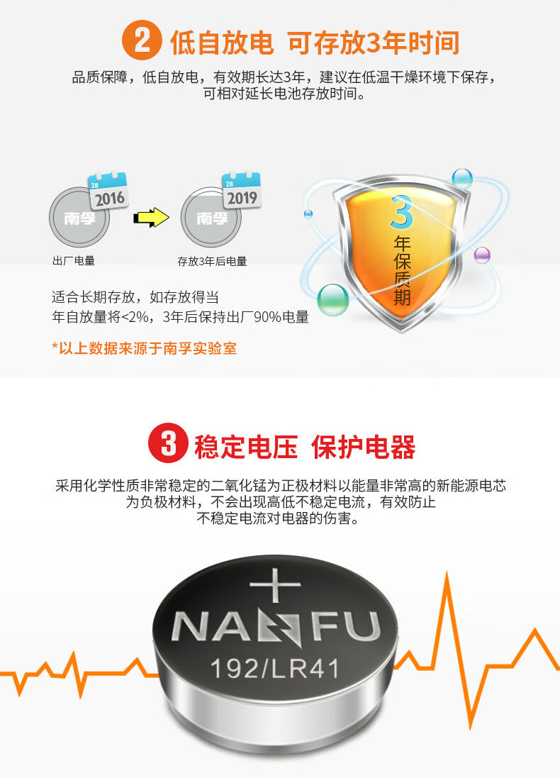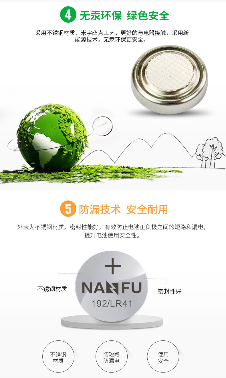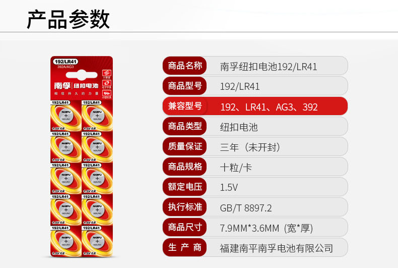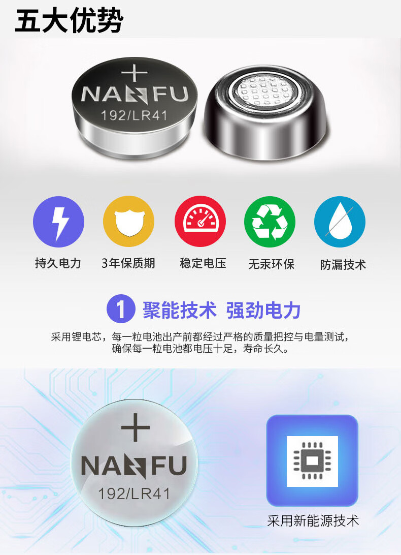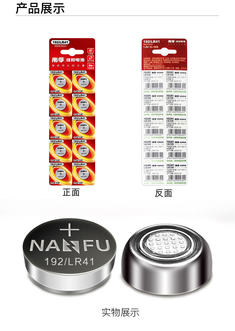 南孚 扣式碱性电池 192/LR41 1.5V 10粒 1板
