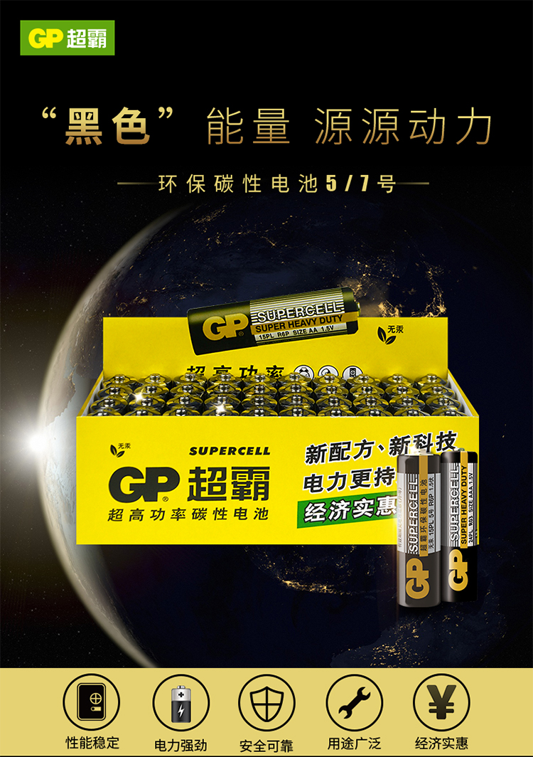超霸 环保碳性电池 GP24PL-BJ2 7号 40粒 1盒