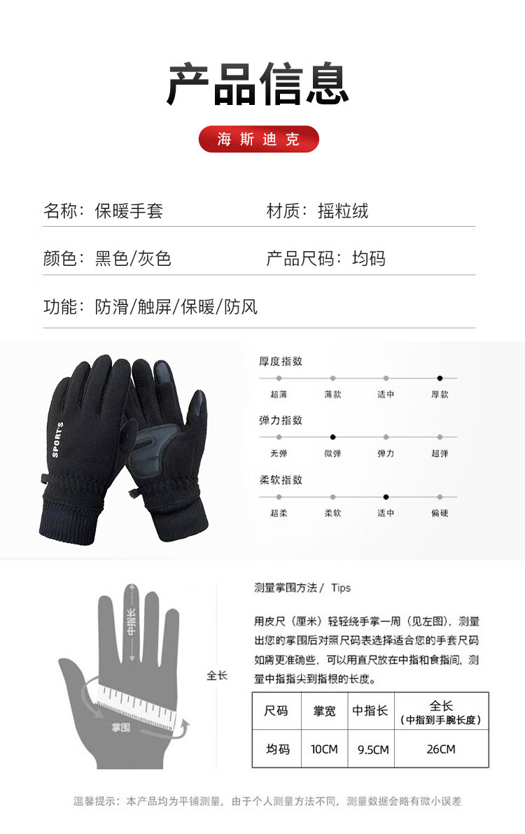 海斯迪克 保暖手套 HKsq-623 摇粒绒 灰色 1双