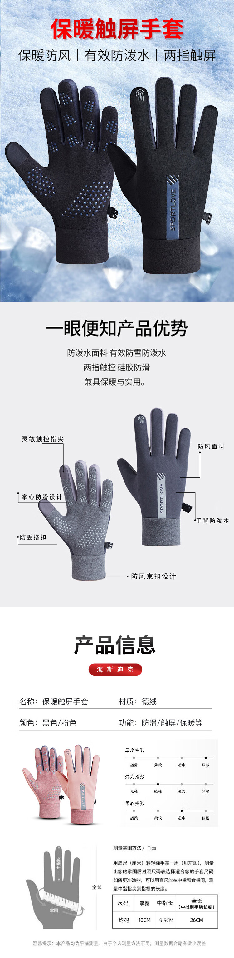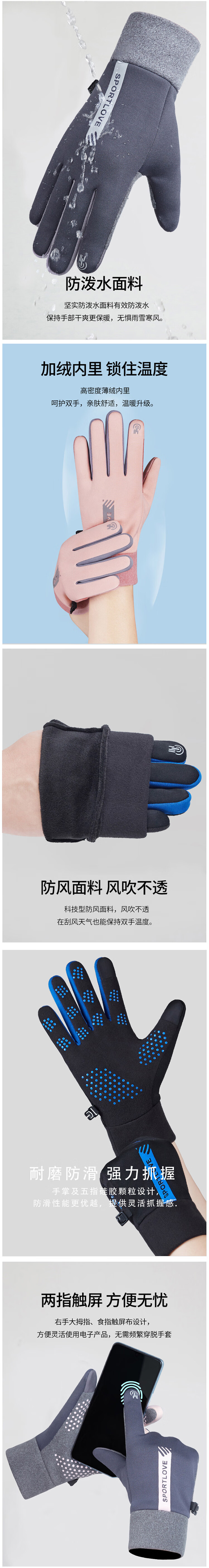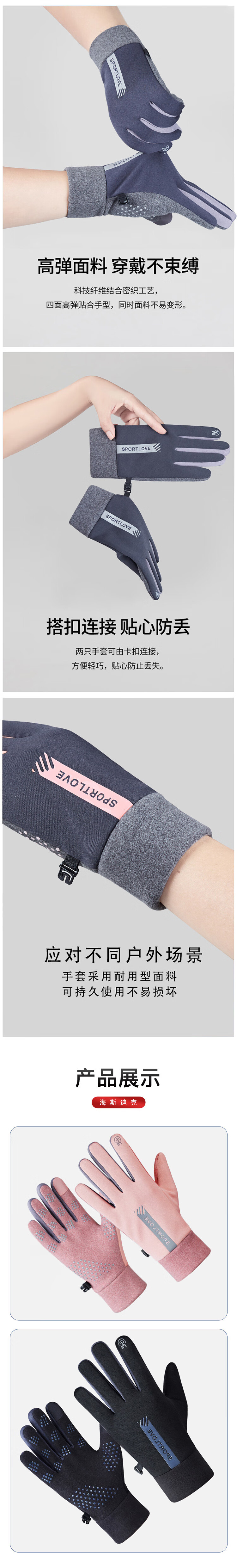 海斯迪克 保暖手套 HKsq-623 德绒 粉色 1双