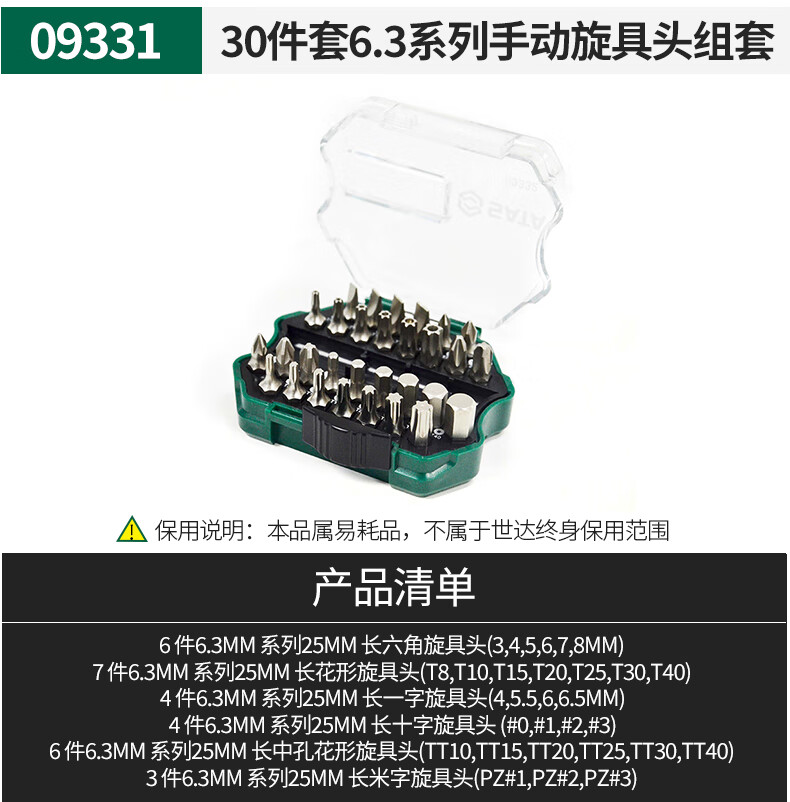 30件套6.3系列手动旋具头组套09331