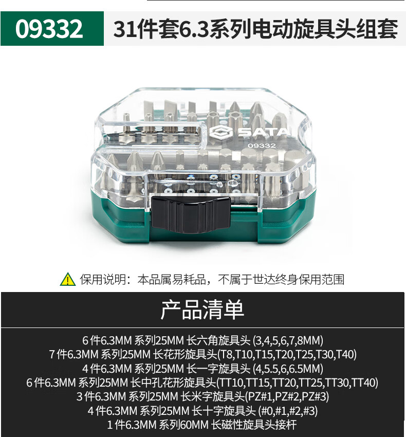 31件套6.3系列电动旋具头组套09332