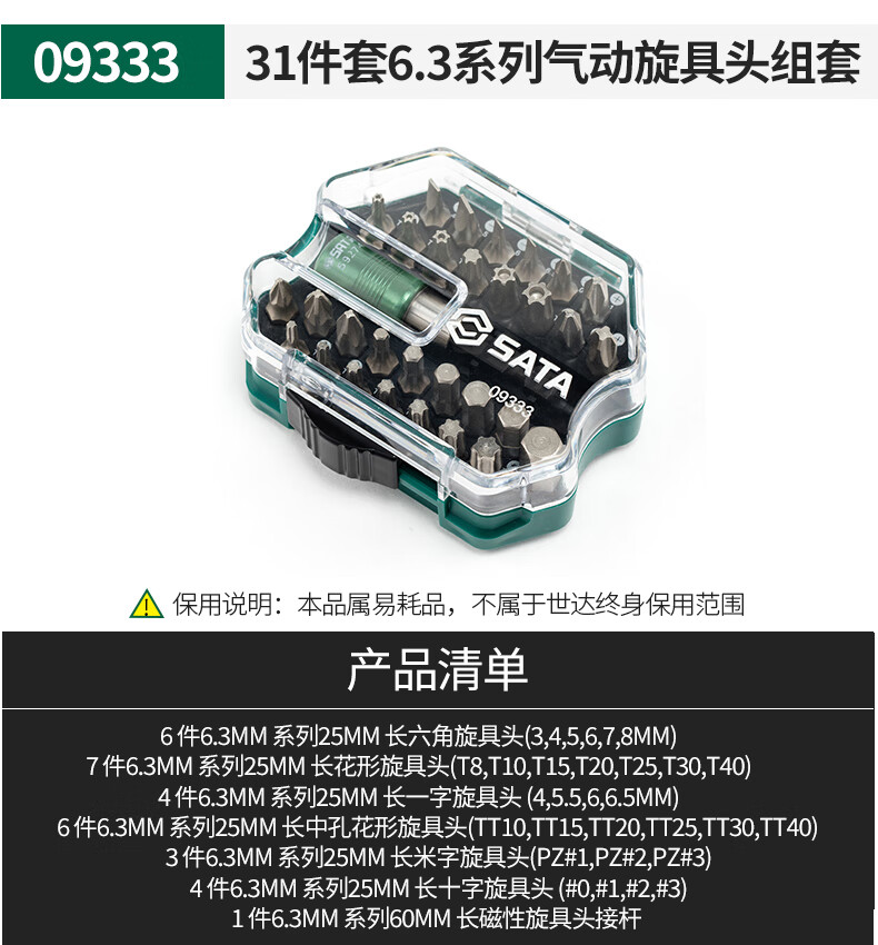 世达 气动旋具头组套 09333 6.3系列 31件 1套