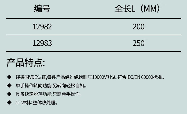 12.5MM系列VDE绝缘快速脱落棘轮扳手