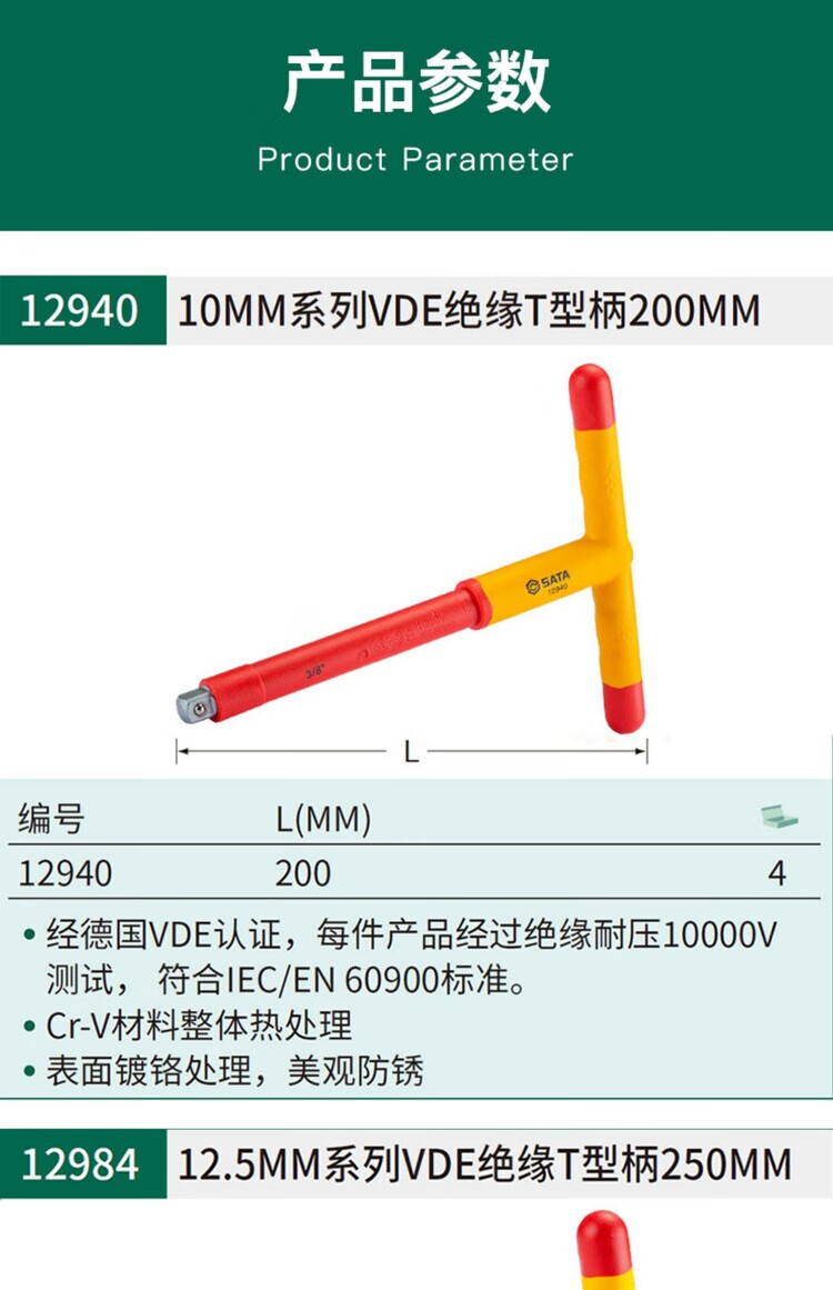 世达 12.5MM系列VDE绝缘T型柄 12984 200mm 1个