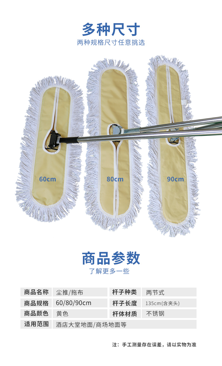 海斯迪克 尘推平板拖把排拖 HZL-95 黄色 牛津布+棉纱 80cm整套拖把+1块替换布 1套