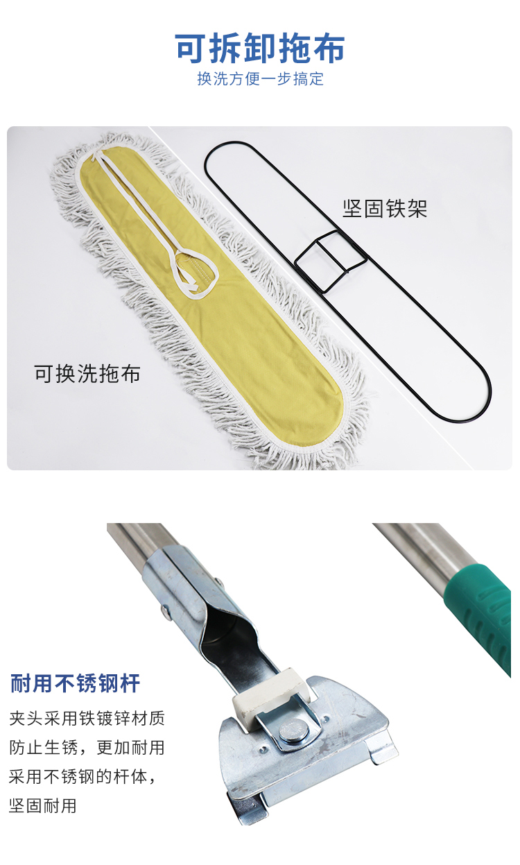 海斯迪克 尘推平板拖把排拖 HZL-95 黄色 牛津布+棉纱 40cm整套拖把+1块替换布 1套
