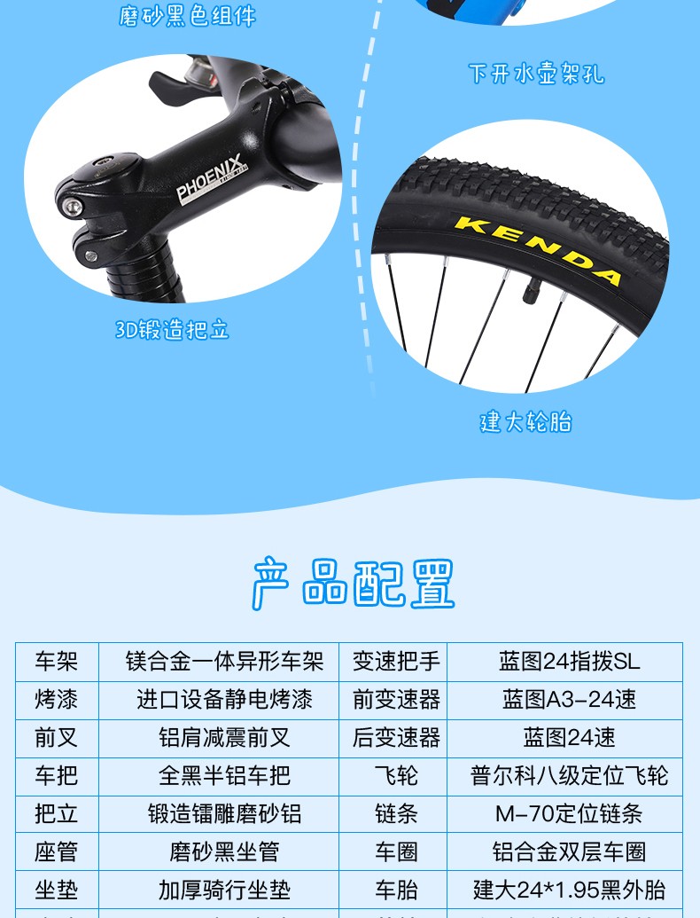 凤凰 变速山地自行车 消光灰 24寸 1辆