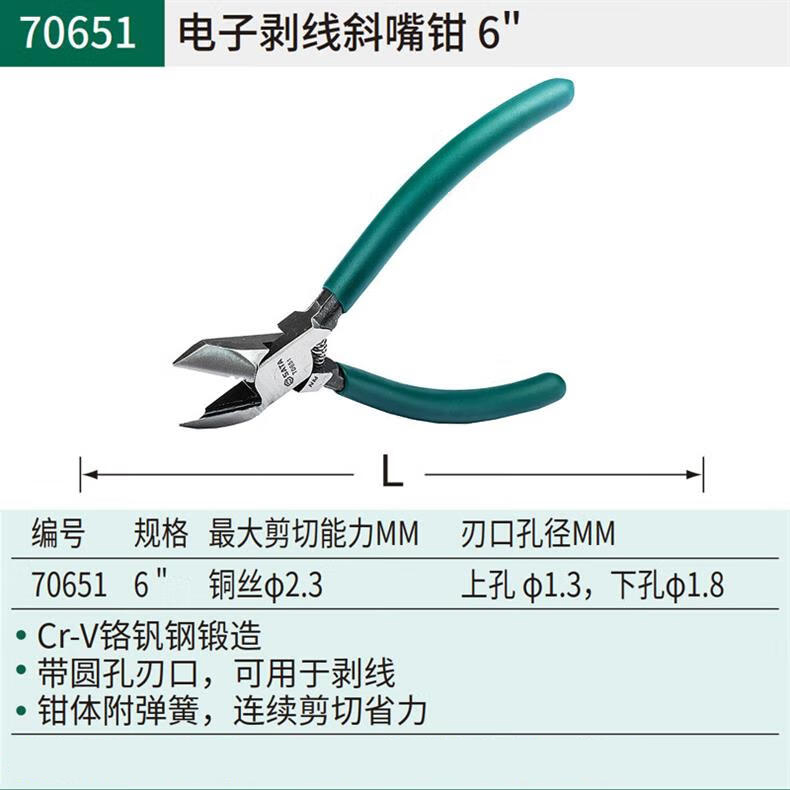 • 70651 电子剥线斜嘴钳6"