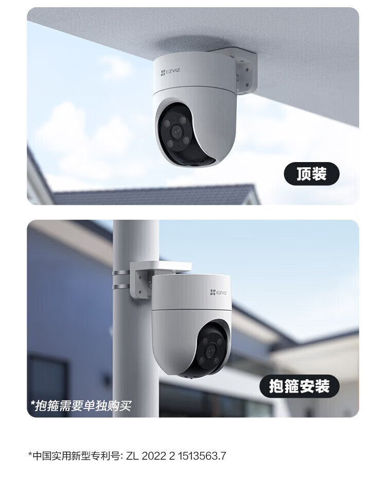 萤石 360全景无线智能摄像头 H8c-3MP 全彩 对讲 Wi-Fi室外云台 256G小耳朵防水电源 1套