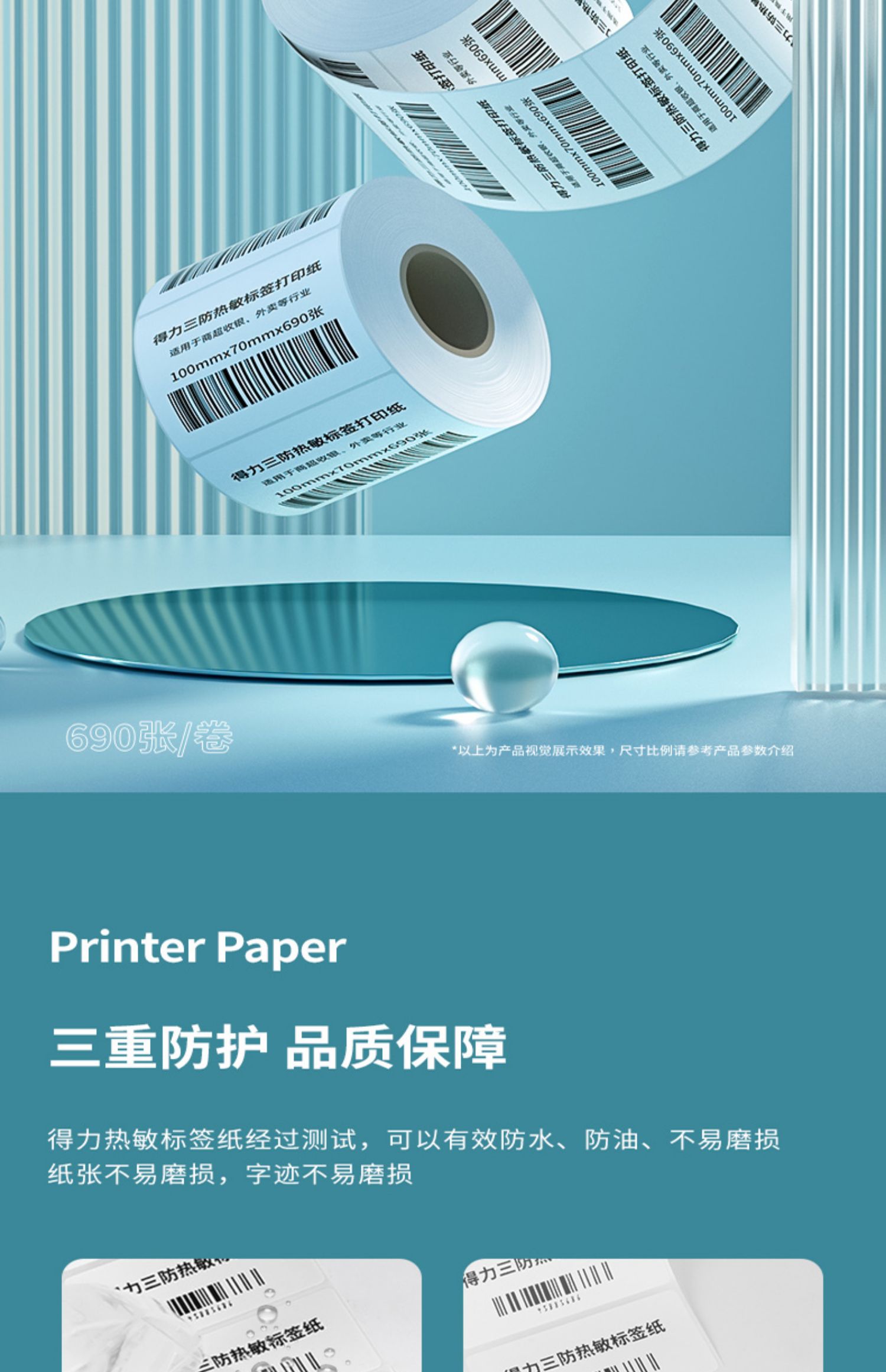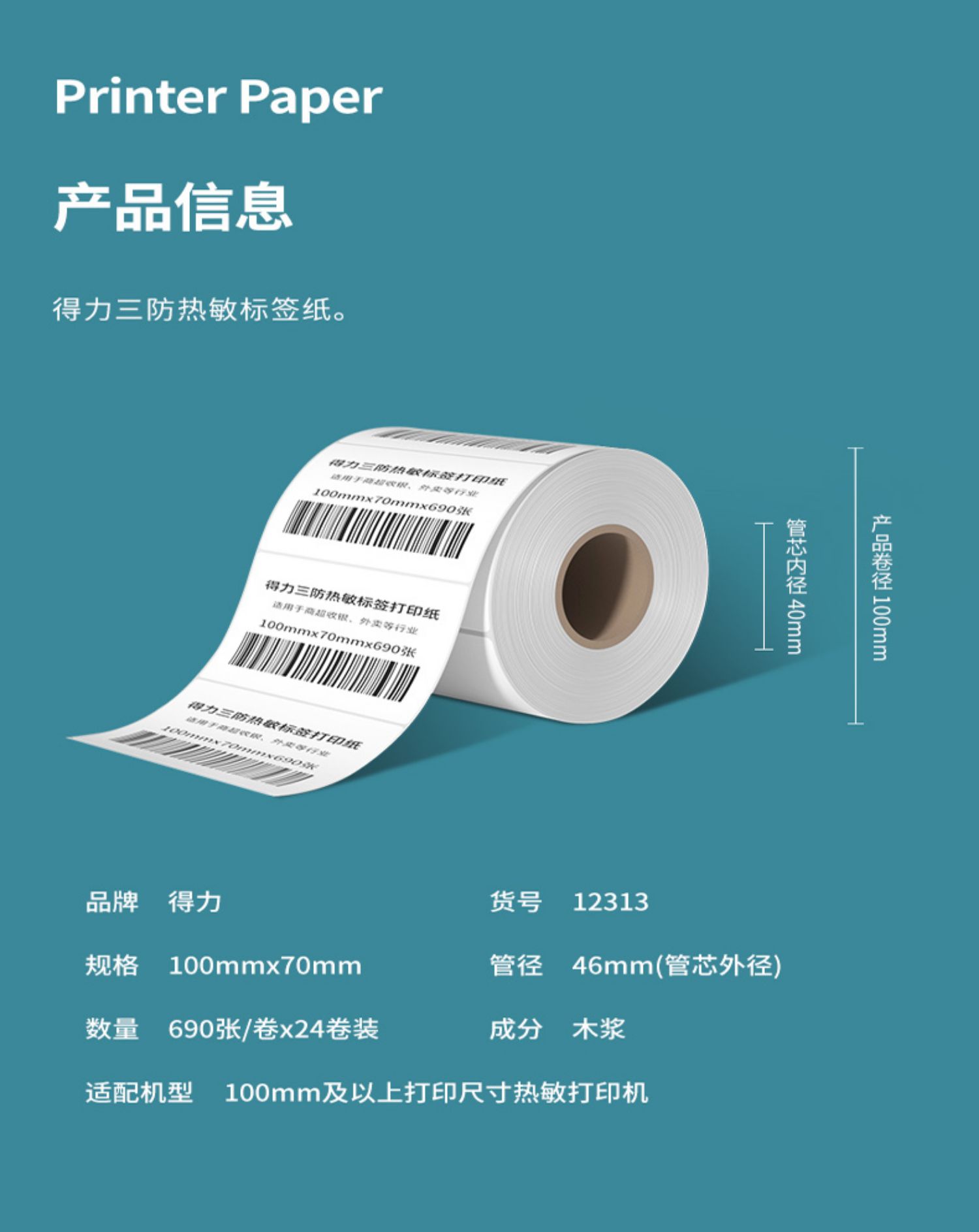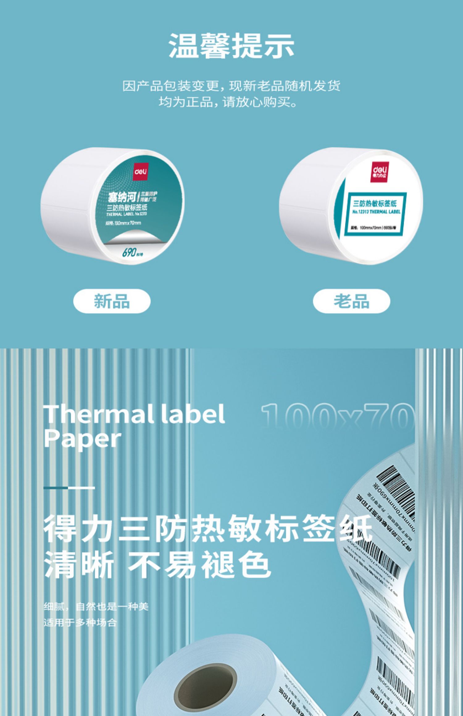 得力 塞纳河系列热敏标签纸 12313 100*70mm 690枚 1卷