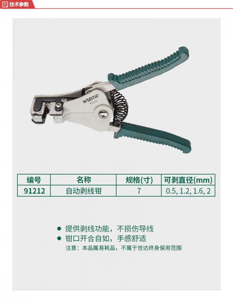 世达 自动剥线钳A型 91212 7" 1-3.2mm 1把