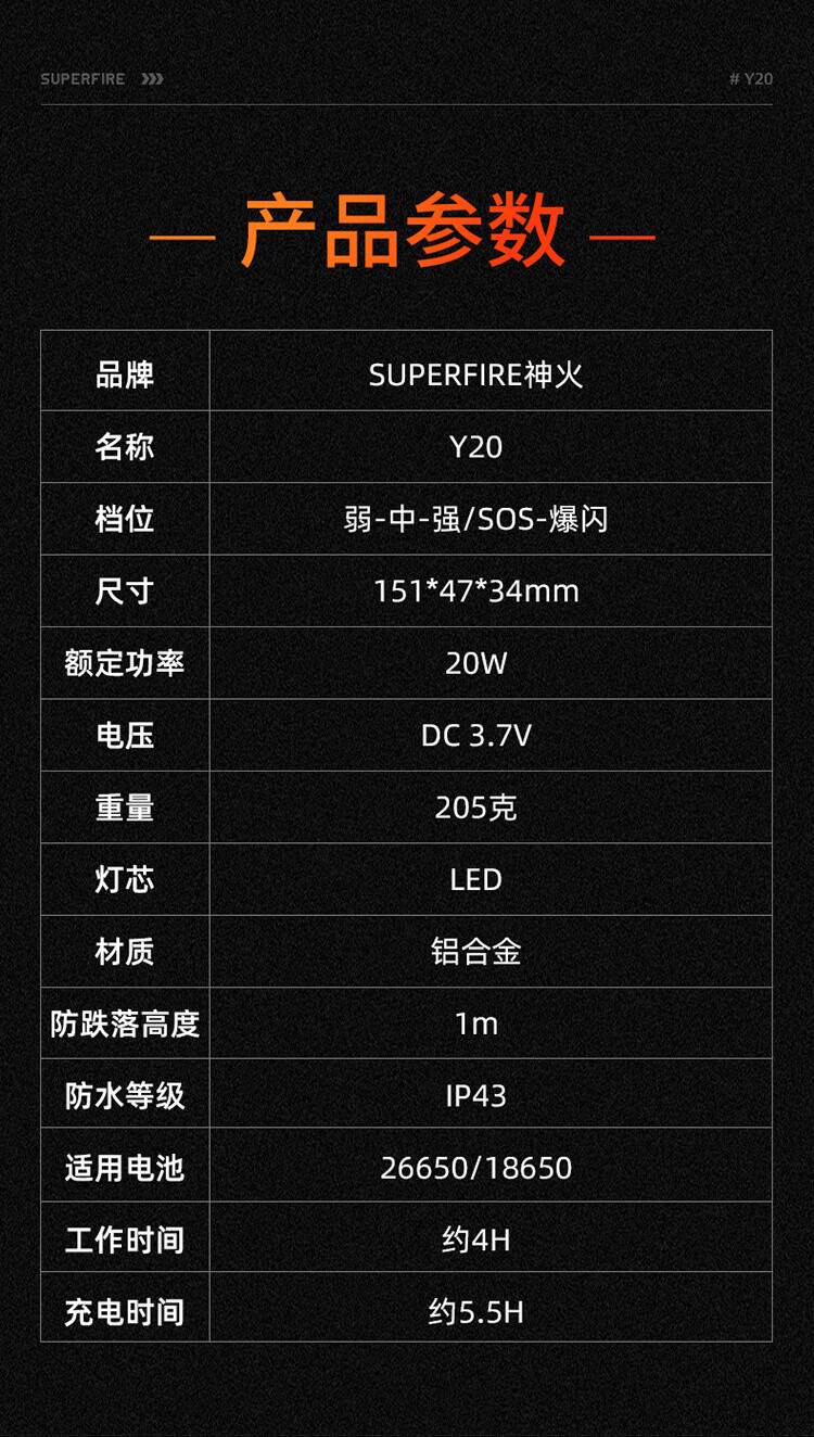 神火 强光远射手电 Y20 20W 151*47*34mm 1个
