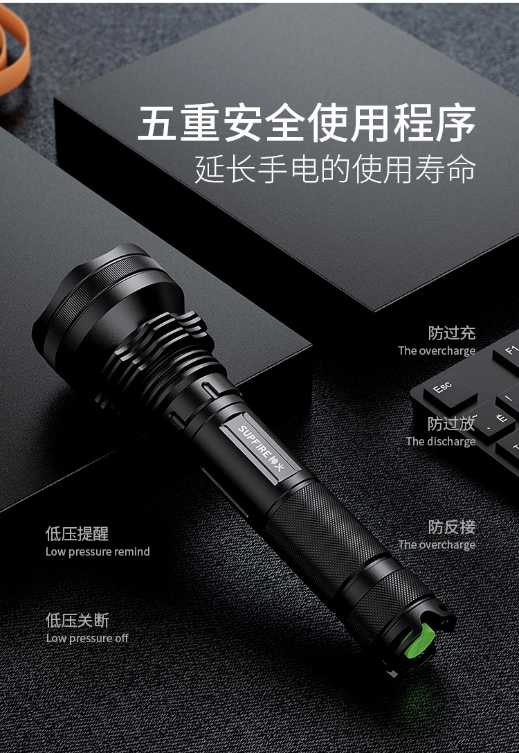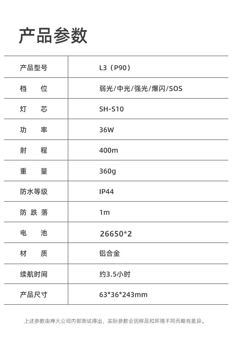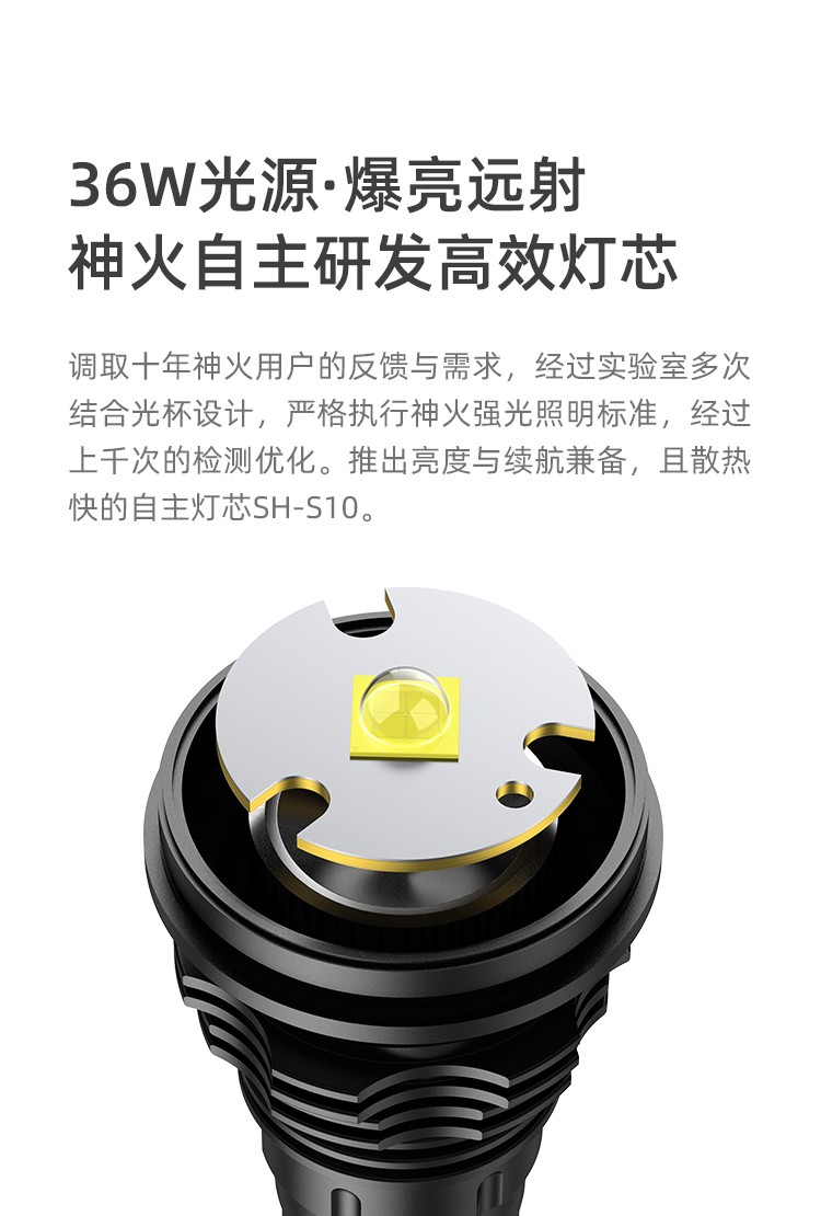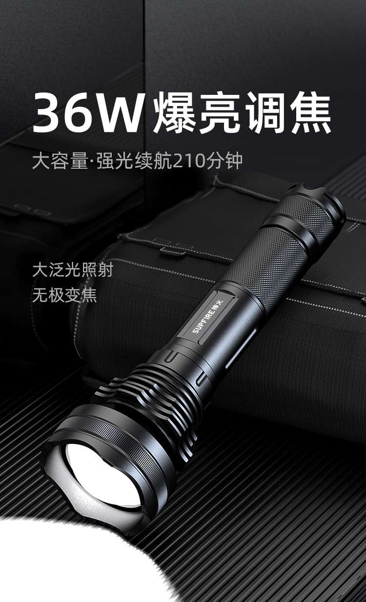 神火 爆亮调焦手电 L3-P90(AB4) 36W 63*36*241mm 1个