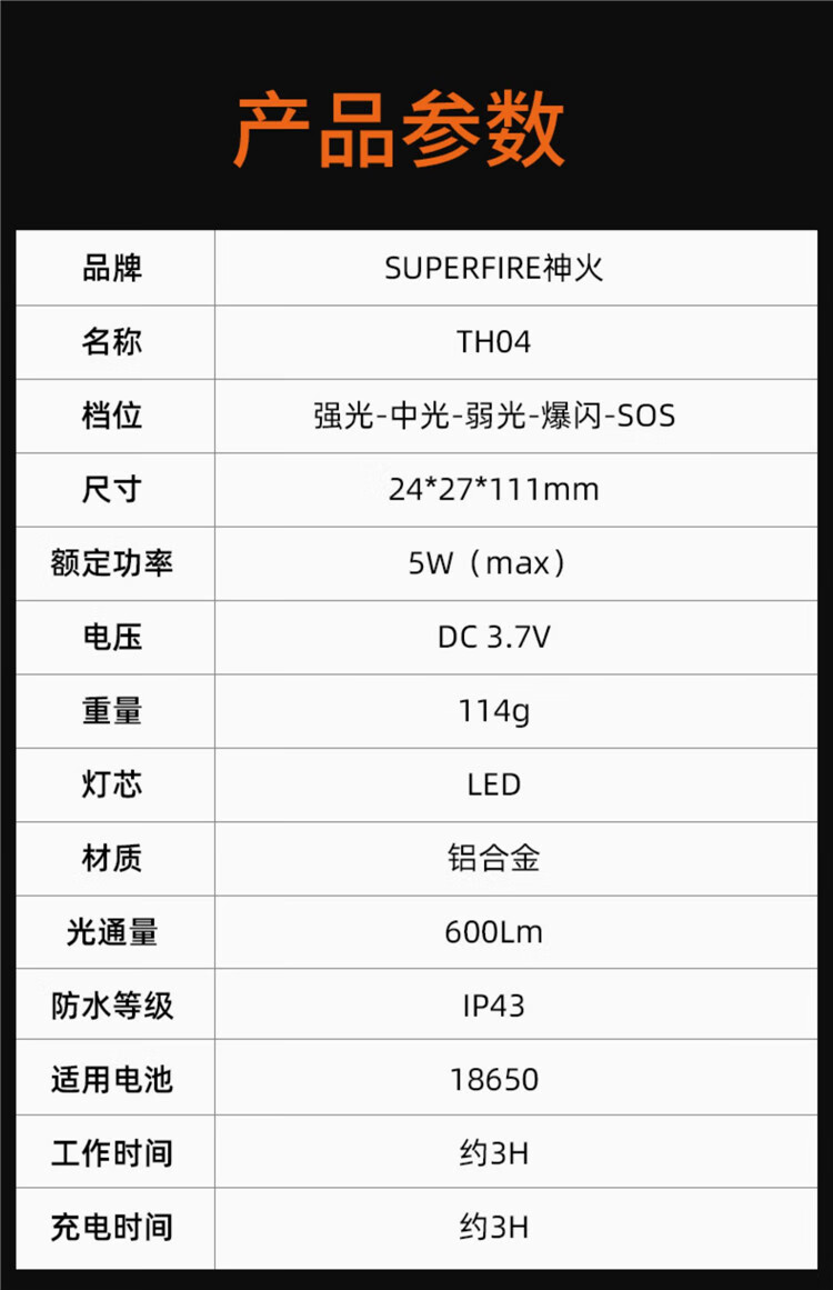 神火 潜水手电 TH04 24*27*111mm 114g 1个