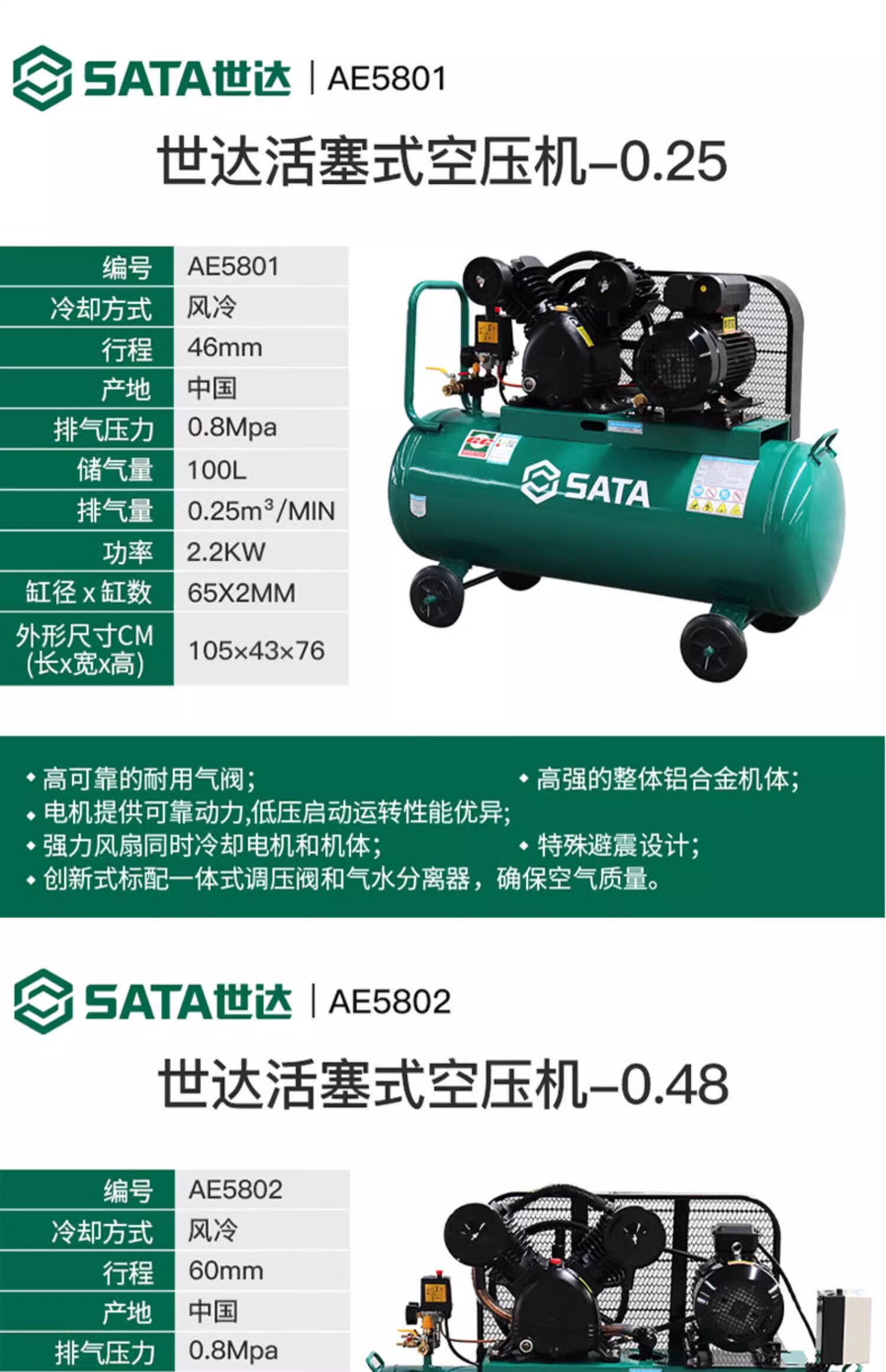 • 商品名称:世达 活塞式空压机