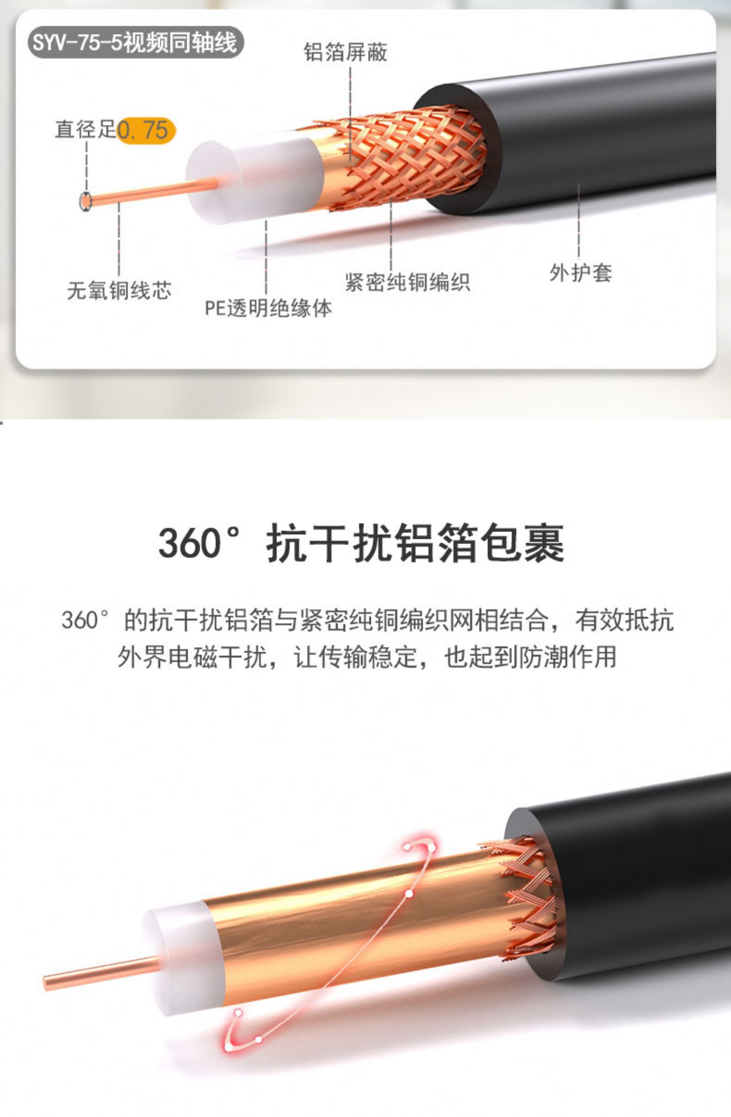 起帆 监控视频线 SYV75-5-1 SYV75-5-1 1米