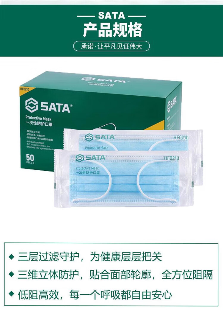 世达 一次性防护口罩 HF0210 三层无纺布 1片