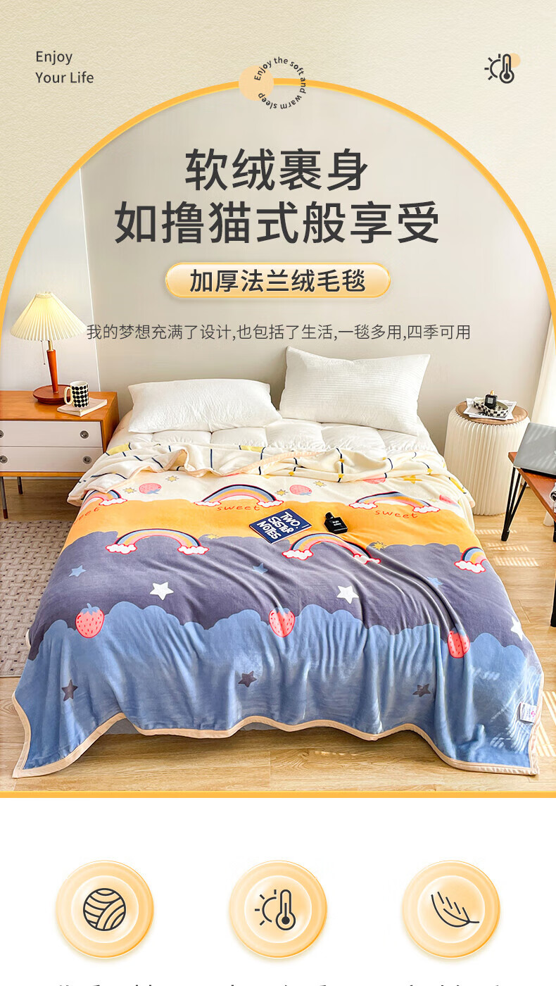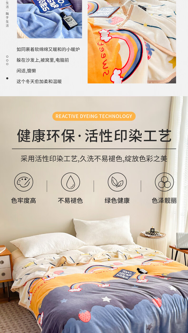 洁丽雅 毛毯 CP888 彩虹草莓 1.5*2米 1件