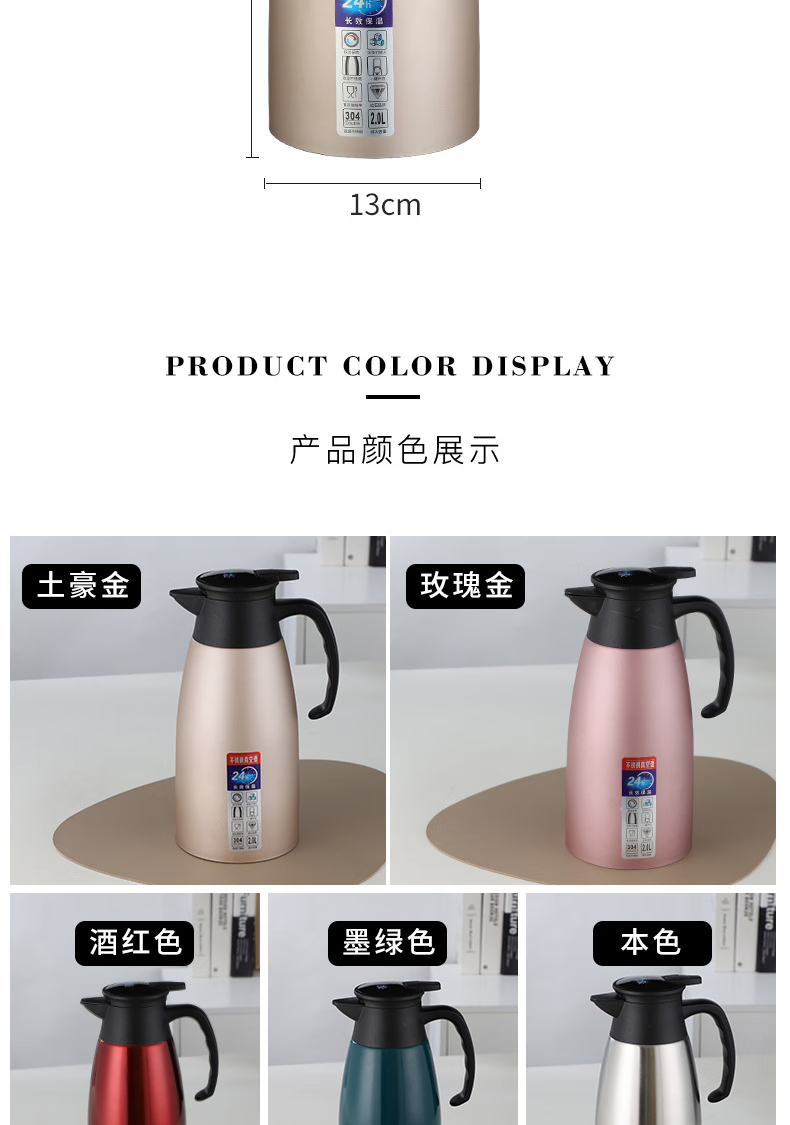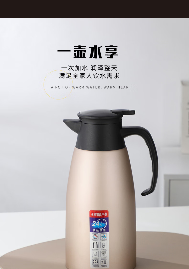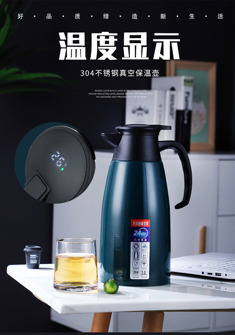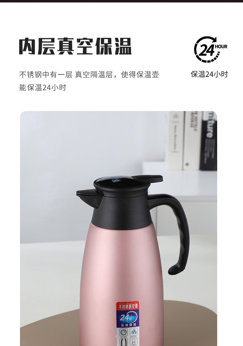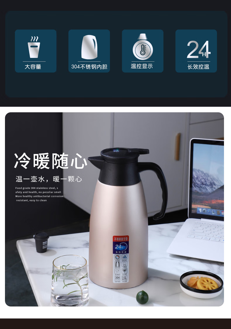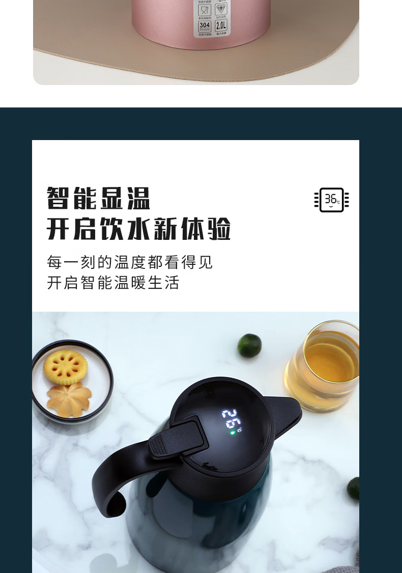 三极户外 不锈钢显温保温壶 TP3618 北欧粉 2L 1个