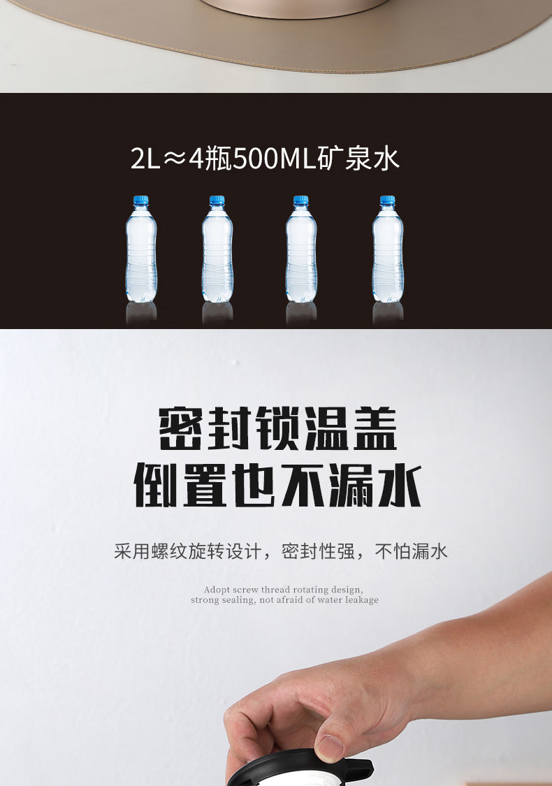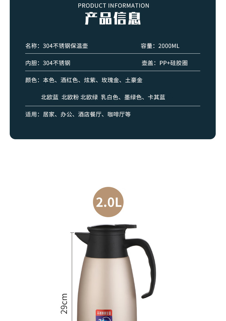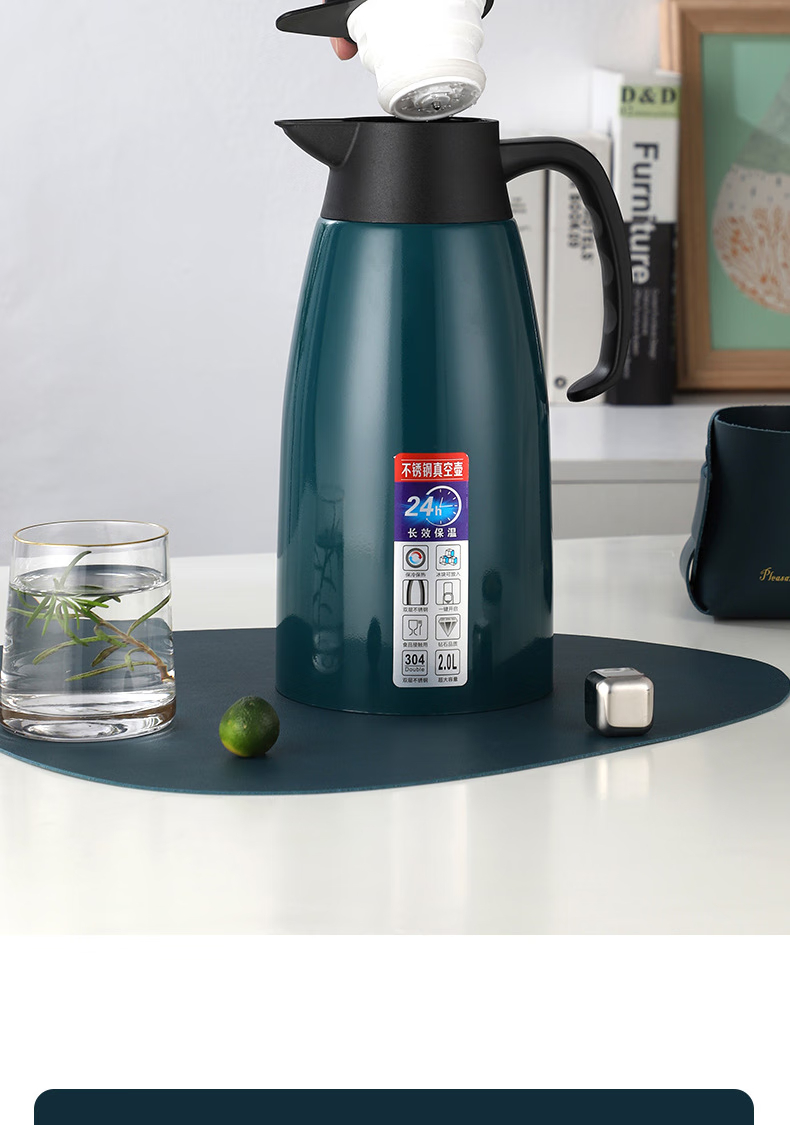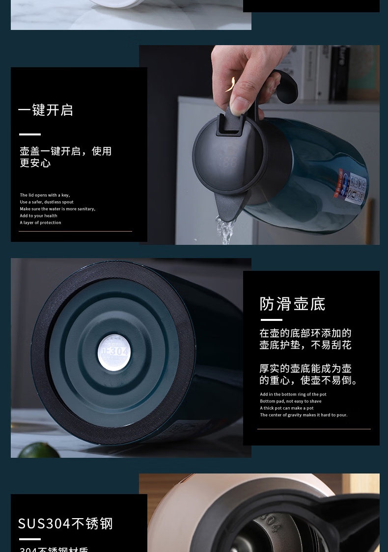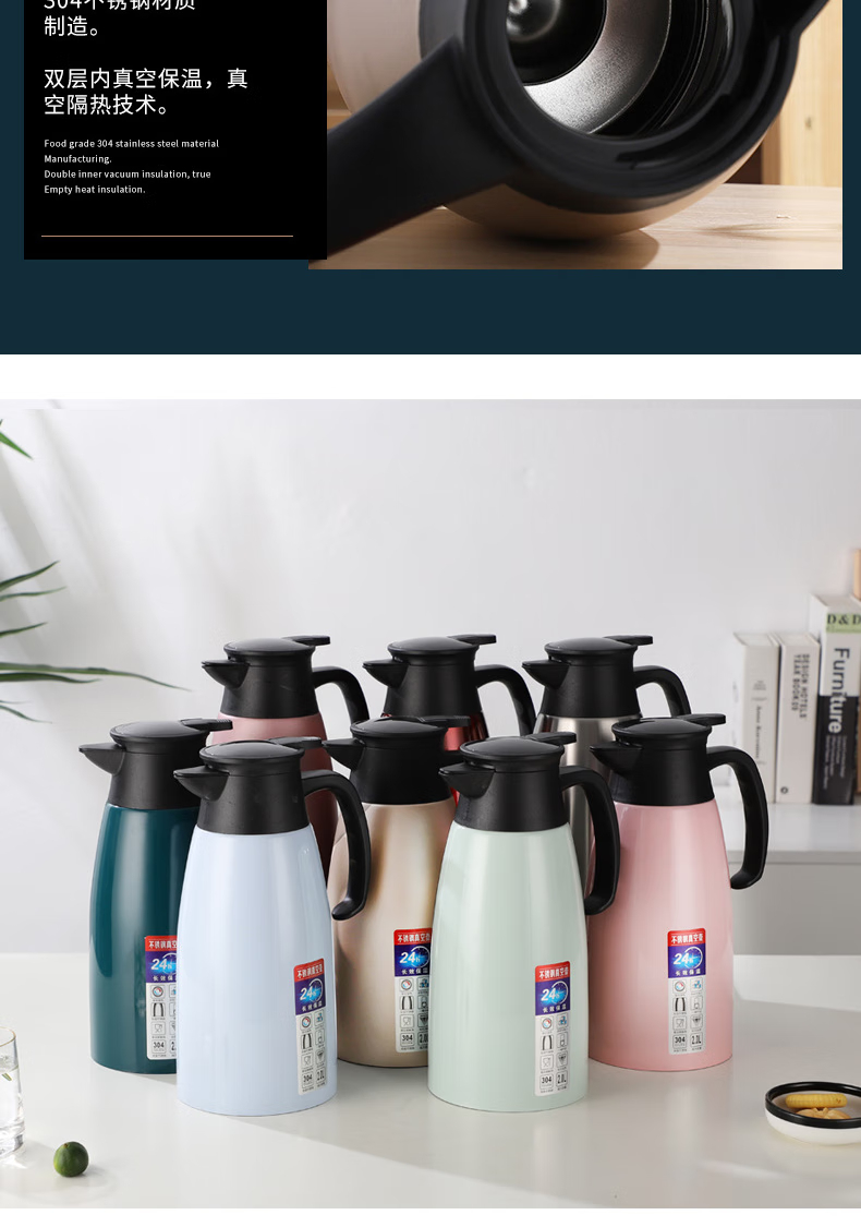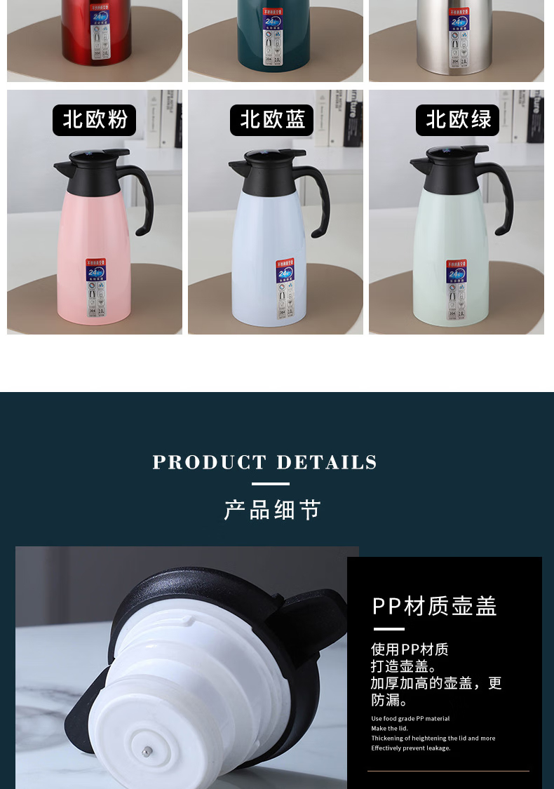 三极户外 不锈钢显温保温壶 TP3618 北欧粉 2L 1个