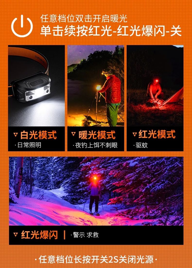 神火 迷你轻便头灯 HL05-R 2W 65*32*39mm 1个